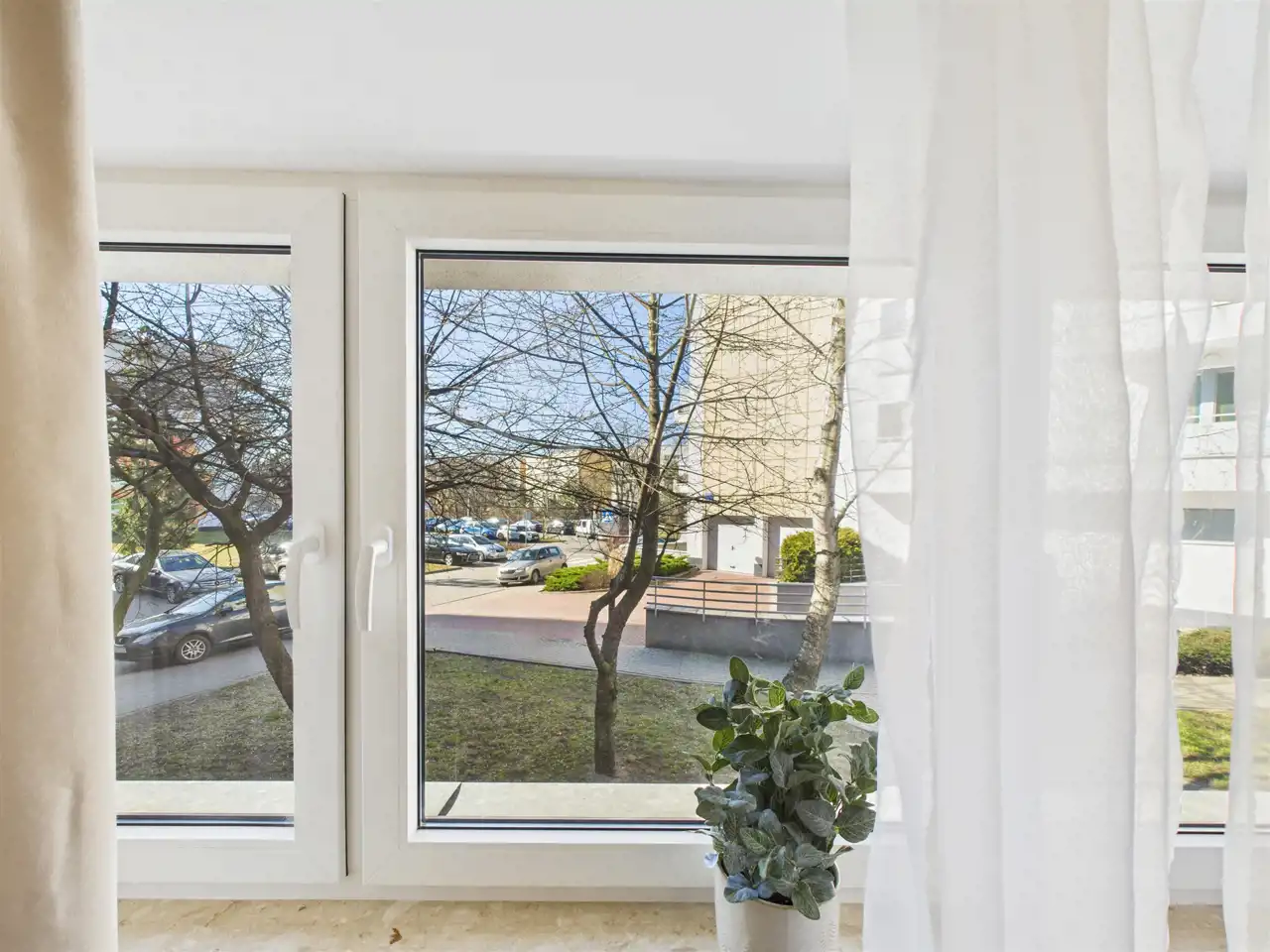 Mieszkanie jest narożne, znajduje się na parterze w zadbanym budynku z lat 70. Do lokalu przynależy piwnica (6 m²) oraz miejsce parkingowe za szlabanem.