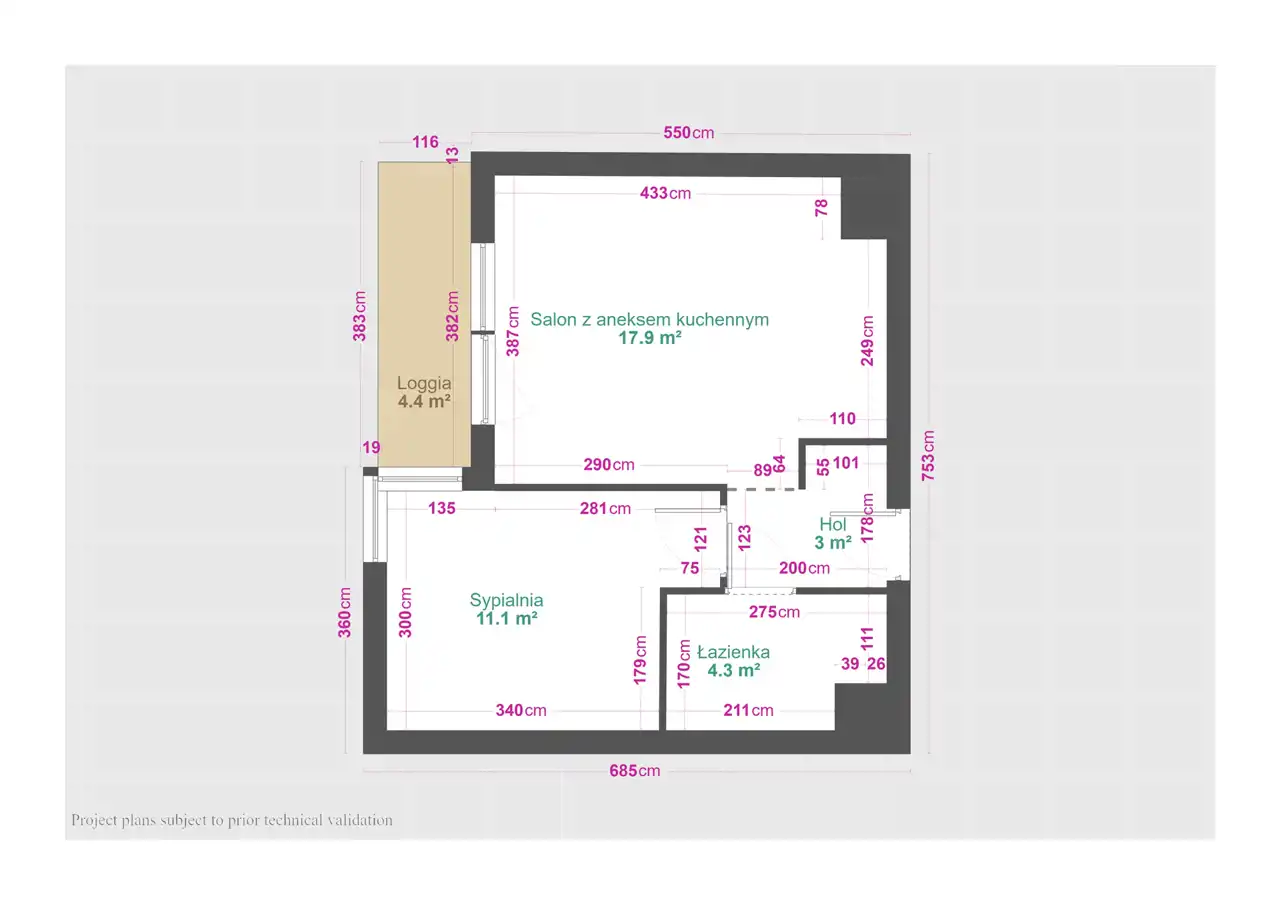 - Charakterystyka mieszkania 36.36 m2, 2 pokoje