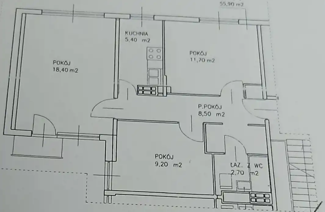 - Charakterystyka mieszkania 55.9 m2, 3 pokoje