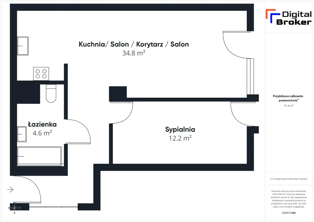 - Metraż: 51,74 m²