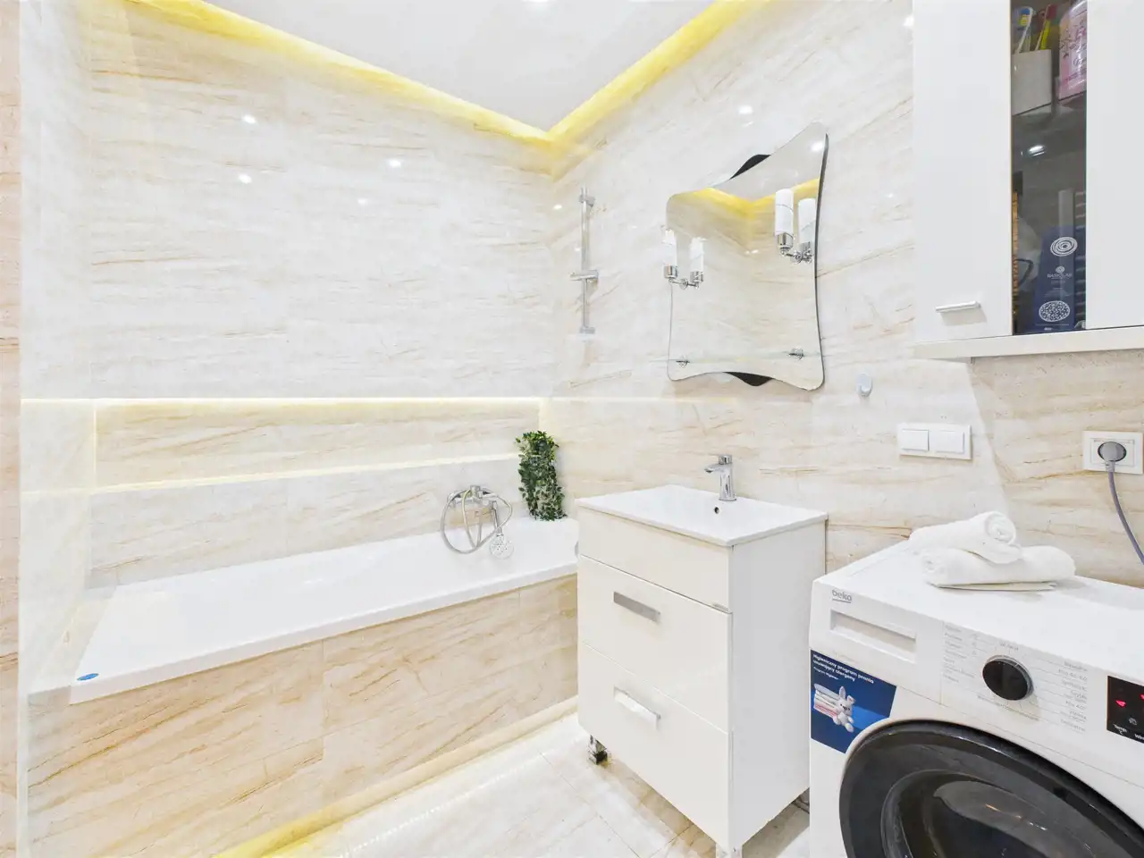 - Łazienka – wanna z możliwością montażu szyby (funkcja prysznica)