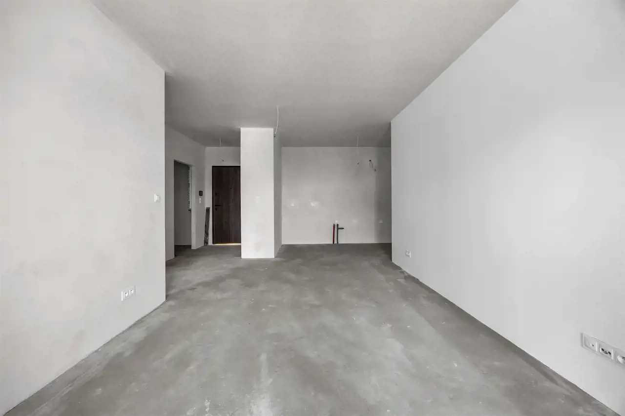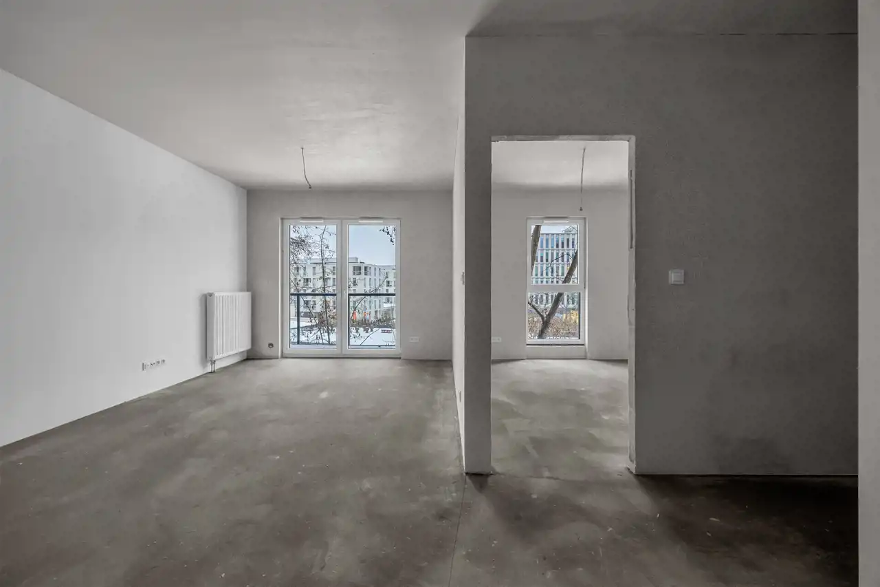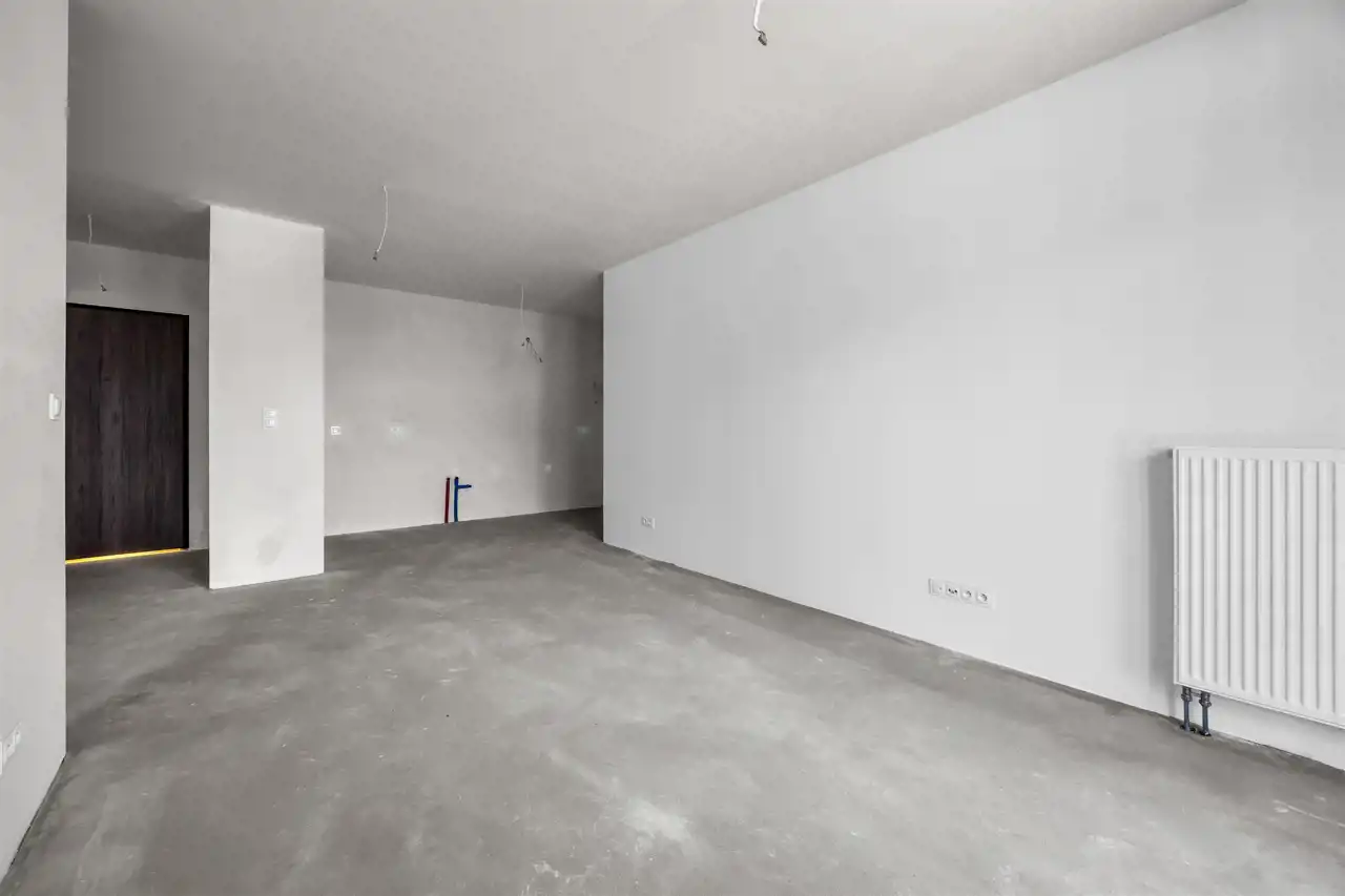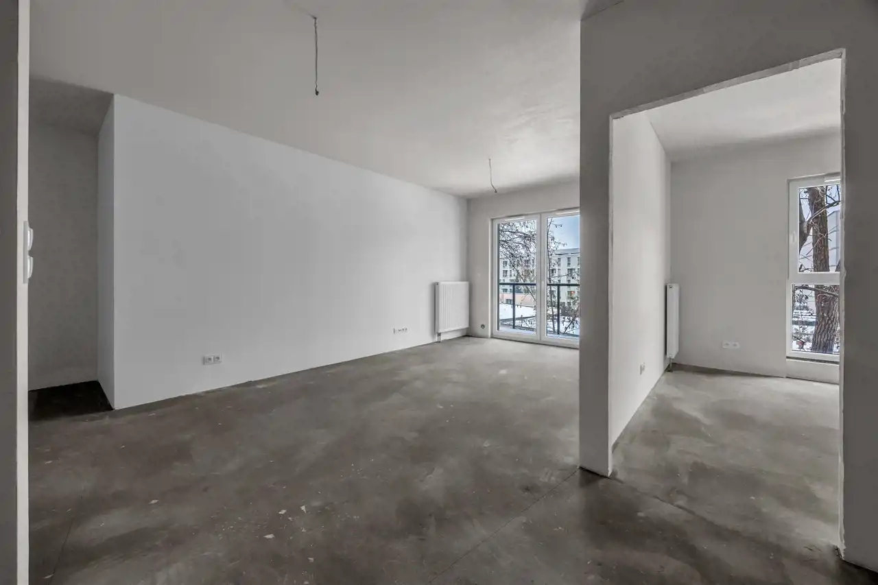 Lokal składa się z przestronnego salonu z aneksem kuchennym, sypialni, wnęki garderobianej, łazienki oraz przedpokoju. Mieszkanie w stanie deweloperskim – idealne do własnej aranżacji lub pod inwestycję najmu.