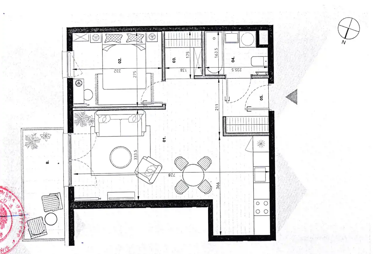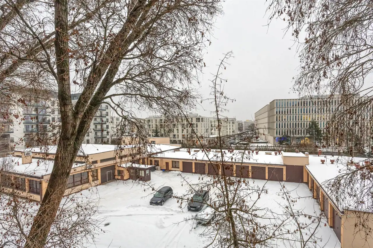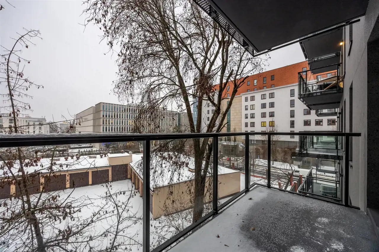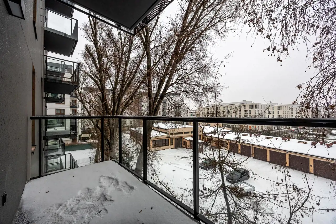 Balkon o powierzchni 6 m² z ekspozycją na wschód / południowy-wschód, co zapewnia dobre doświetlenie w pierwszej części dnia. Widok na wewnętrzną część osiedla i zieleń, brak bezpośredniego ruchu ulicznego pod oknami. Układ funkcjonalny, wyraźnie wydzielona strefa dzienna i prywatna.