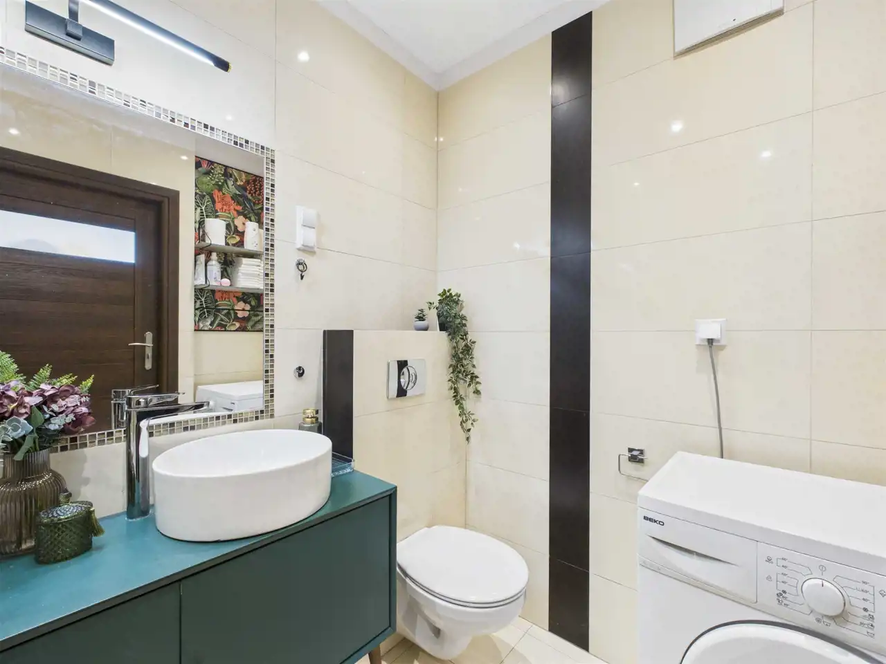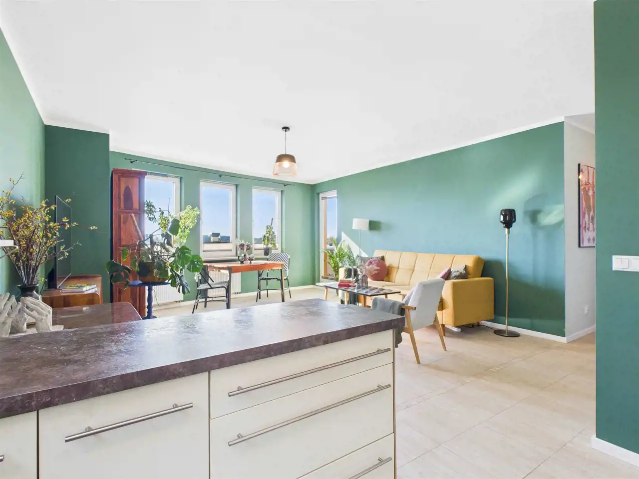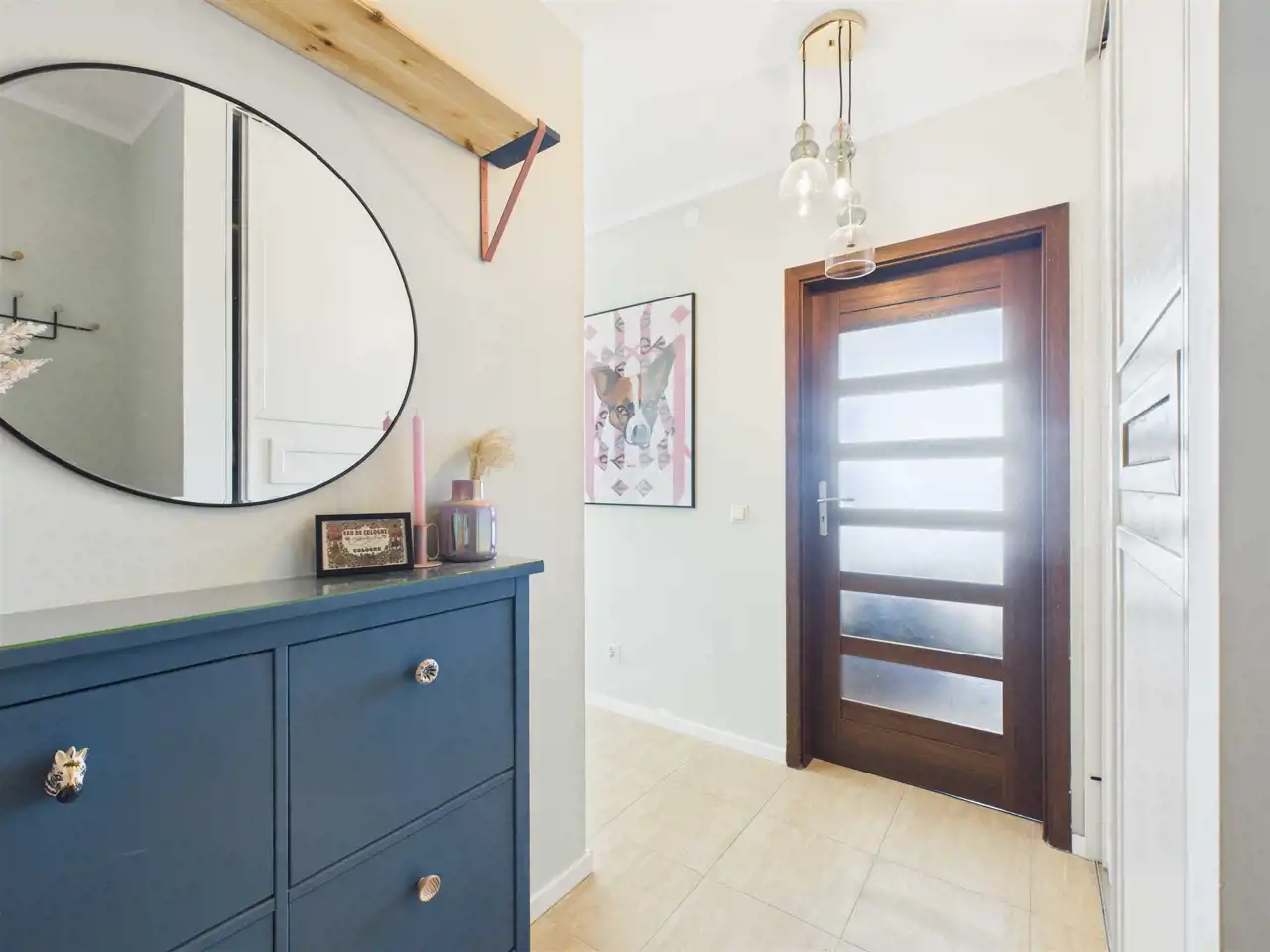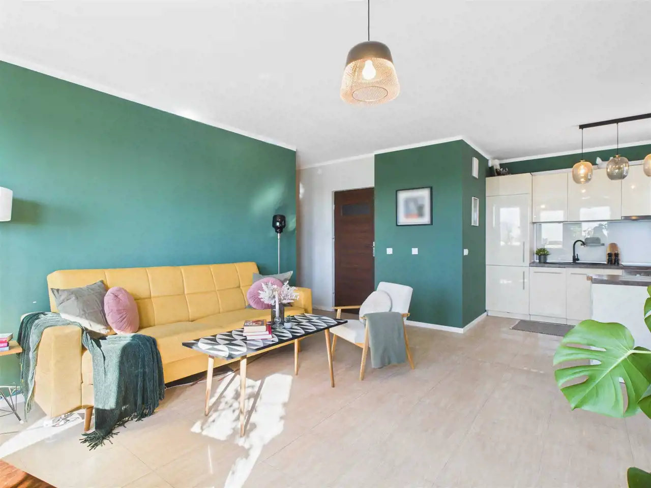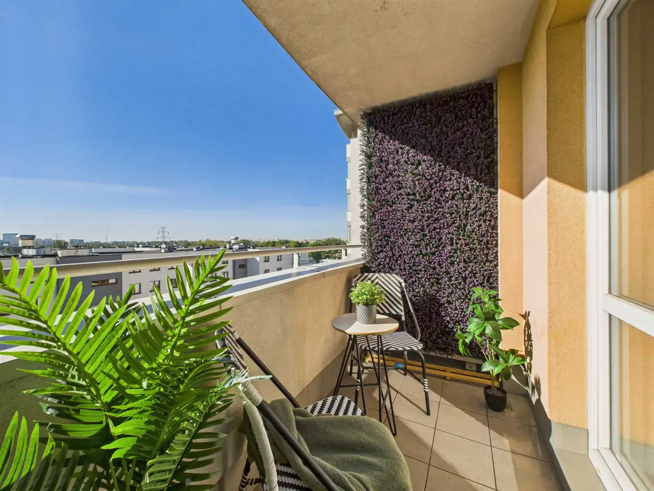 Mieszkanie usytuowane na 9 piętrze (w 11-piętrowej części budynku), z nieograniczonym widokiem z okien oraz piękną panoramą city. Wykończone w 2012 roku, zostało zaprojektowane w nowoczesnym stylu z akcentami boho, dzięki czemu wnętrza łączą elegancję z przytulną atmosferą sprzyjającą relaksowi i codziennemu wypoczynkowi.