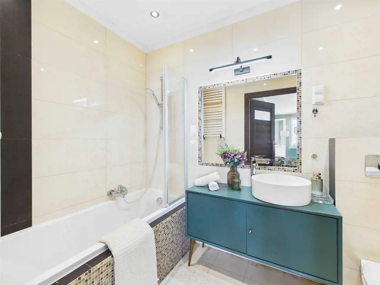 ✔ łazienka 4,4 m2, wyposażona w wannę z opcją prysznica, umywalkę i WC