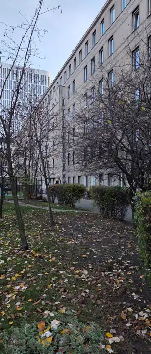 Budowlę rozpoczęto w 1939 roku a ukończono po wojnie, w 1949 roku. Zachowano pierwotne założenia budowlane : okładziny z piaskowca, tynk szlachetny i minimalistyczne dekoracje z czarnego kwarcytu. Budynek stoi k Skweru Mieczysława Fogga i od strony tego skweru ma podcienia arkadowe i wsparty jest ma licznych, smukłych słupach. Posesja ogrodzona, zamknięta. Klatka czysta.