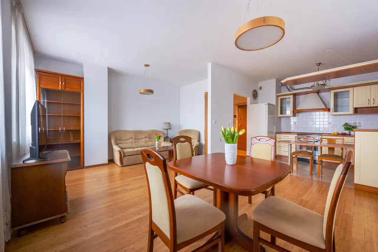 Słoneczny i cichy apartament o pow. 60 m2 z balkonem 8,5 m2, a także dwiema komórkami lokatorskimi i miejscem garażowym. Nieruchomość położona na Dolnym Mokotowie w sąsiedztwie galerii handlowej Sadyba Best Mall. Zaledwie 8 min. samochodem do Parku w Wilanowie i do Łazienek Królewskich.