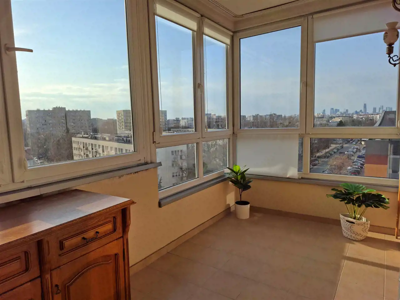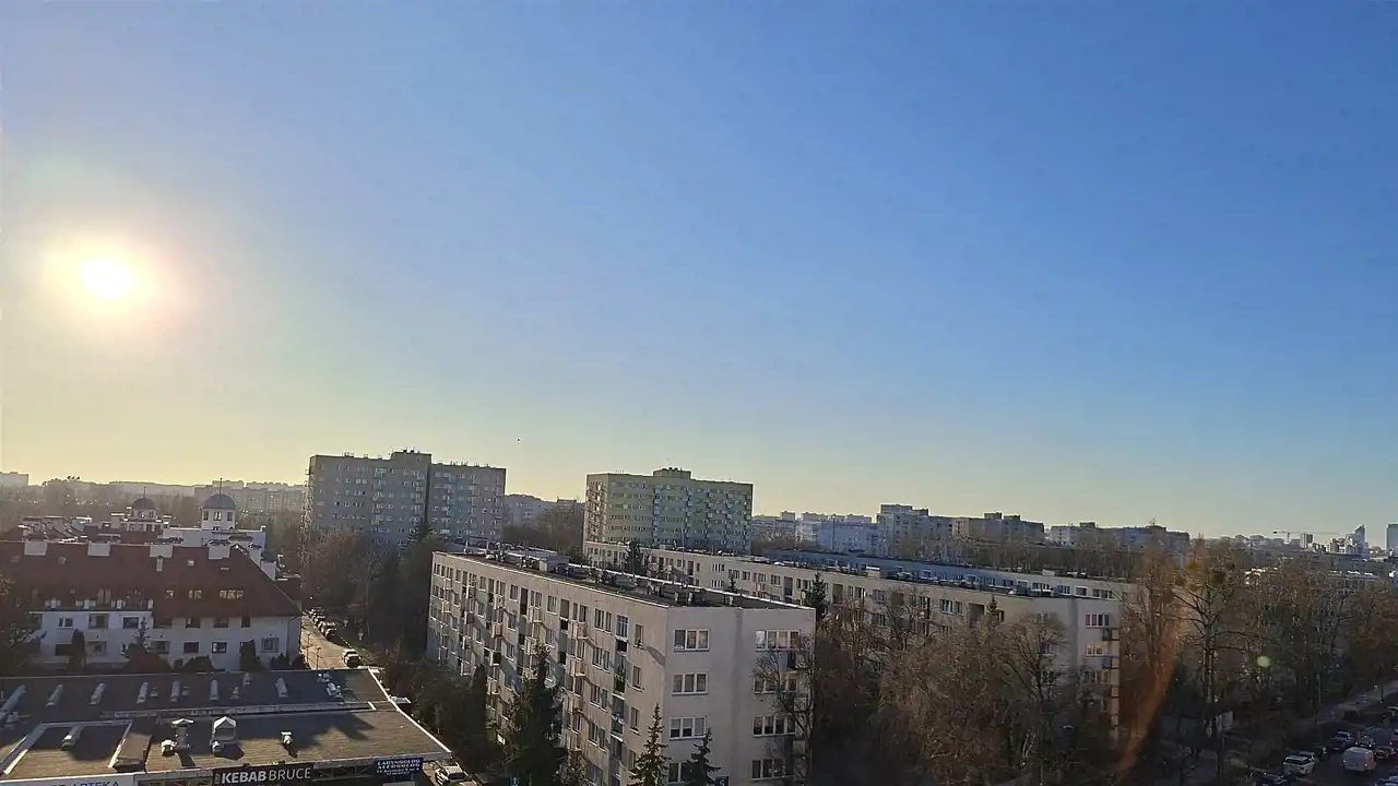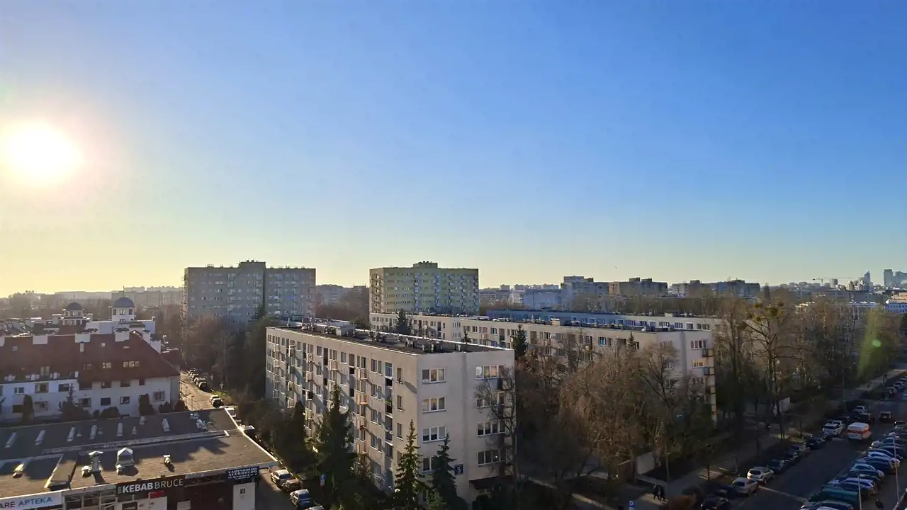 - Okna skierowane na zielone osiedle i panoramę Warszawy (widok na Centrum)