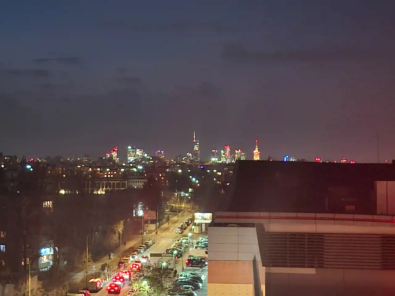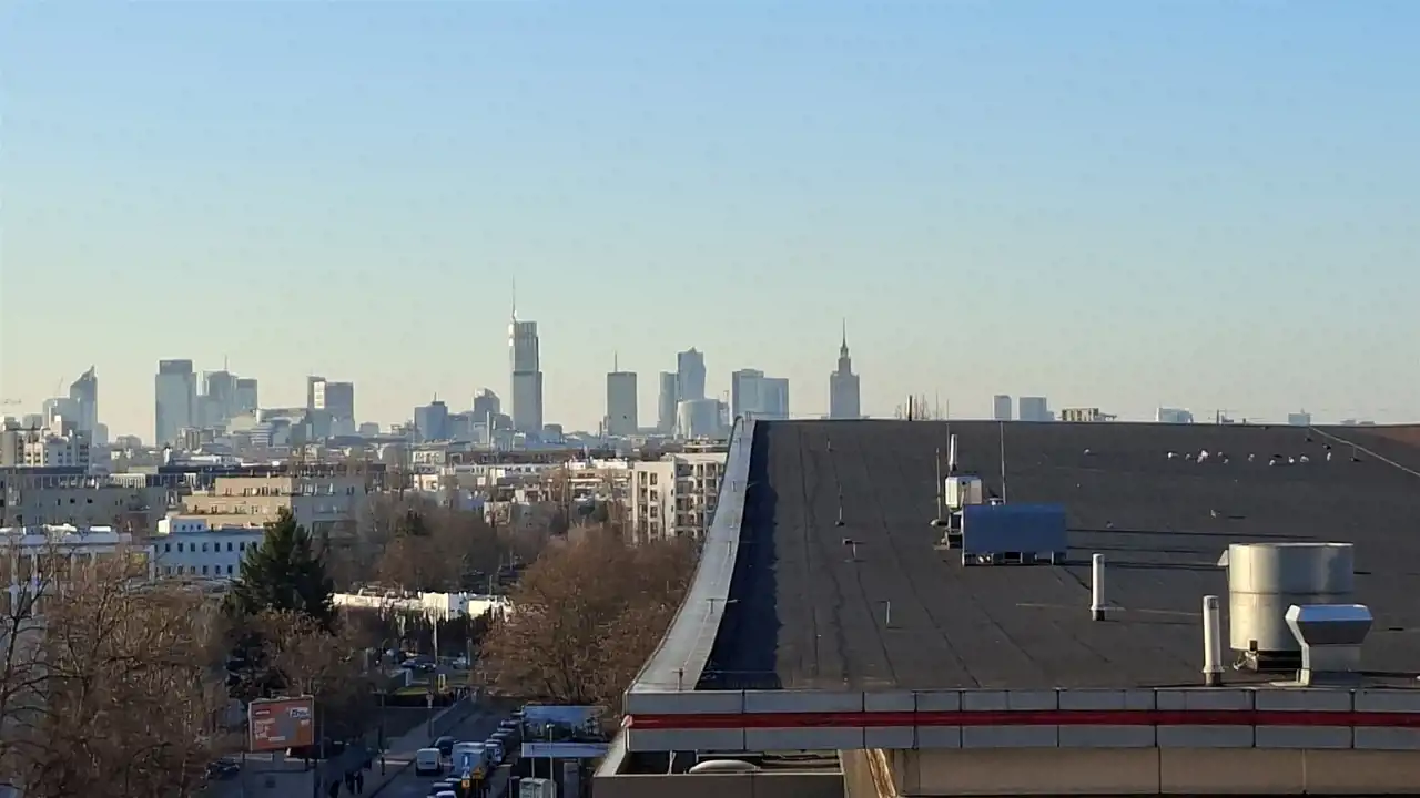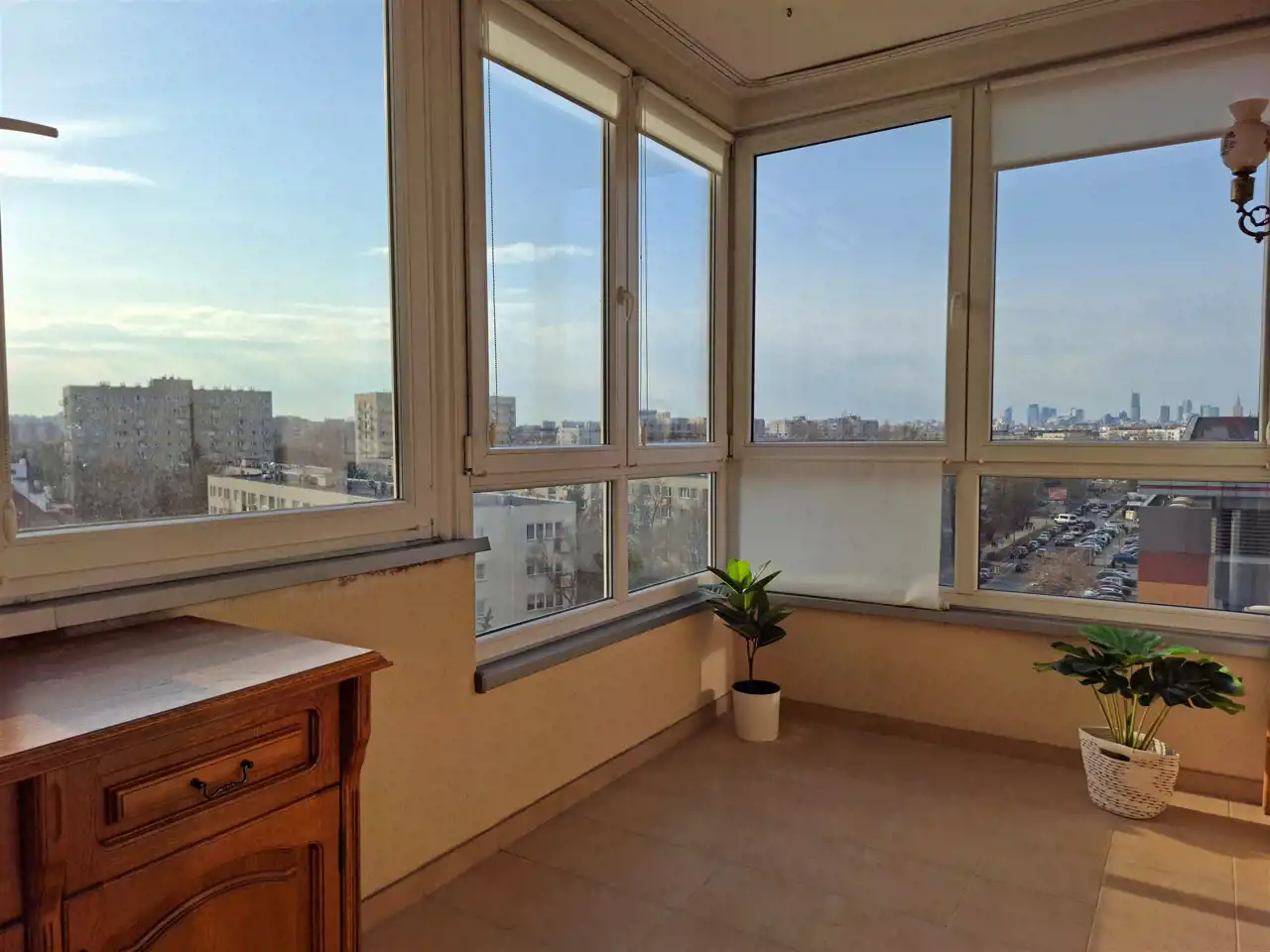 - Okna skierowane na zielone osiedle i panoramę Warszawy (widok na Centrum)
