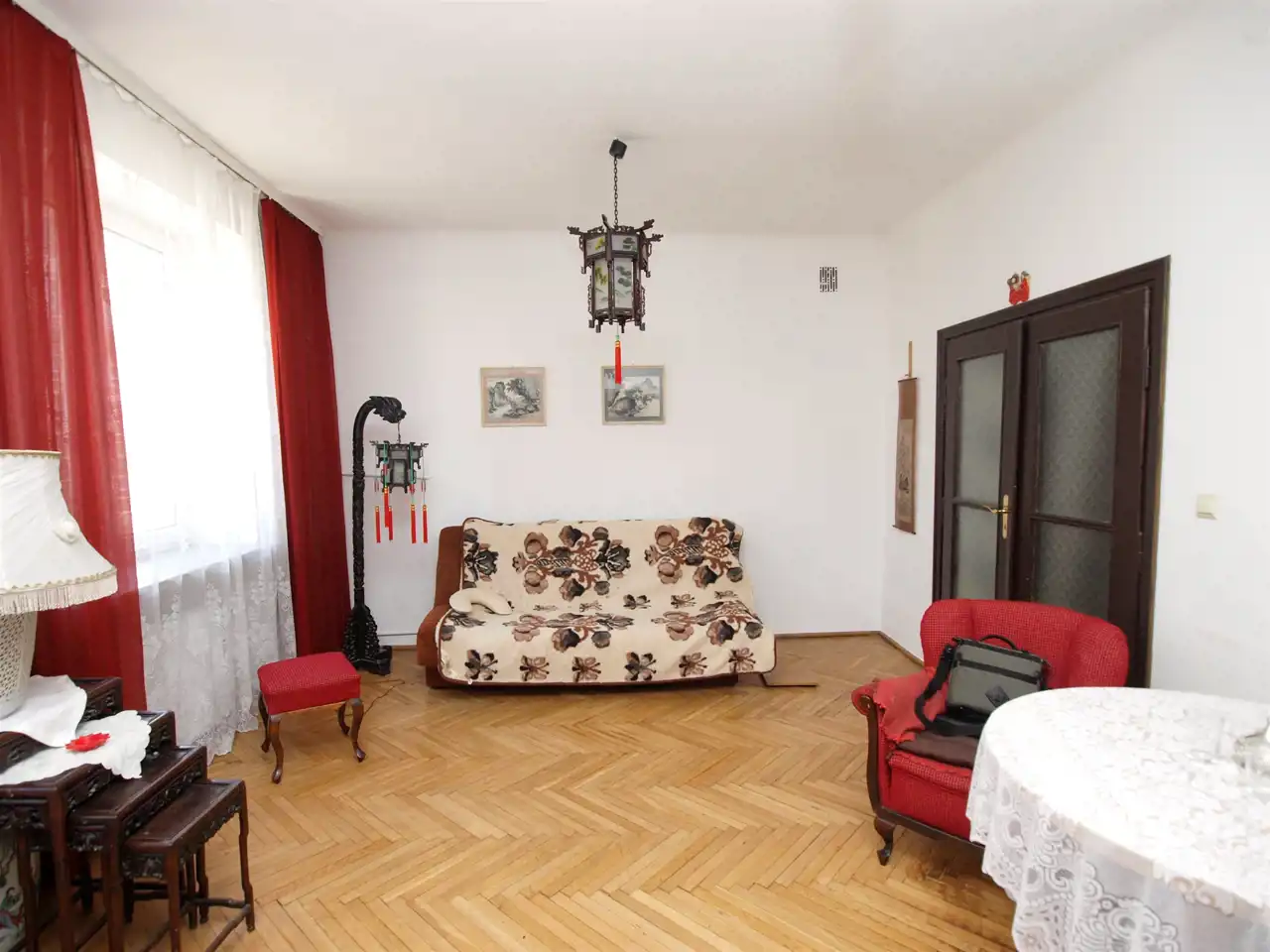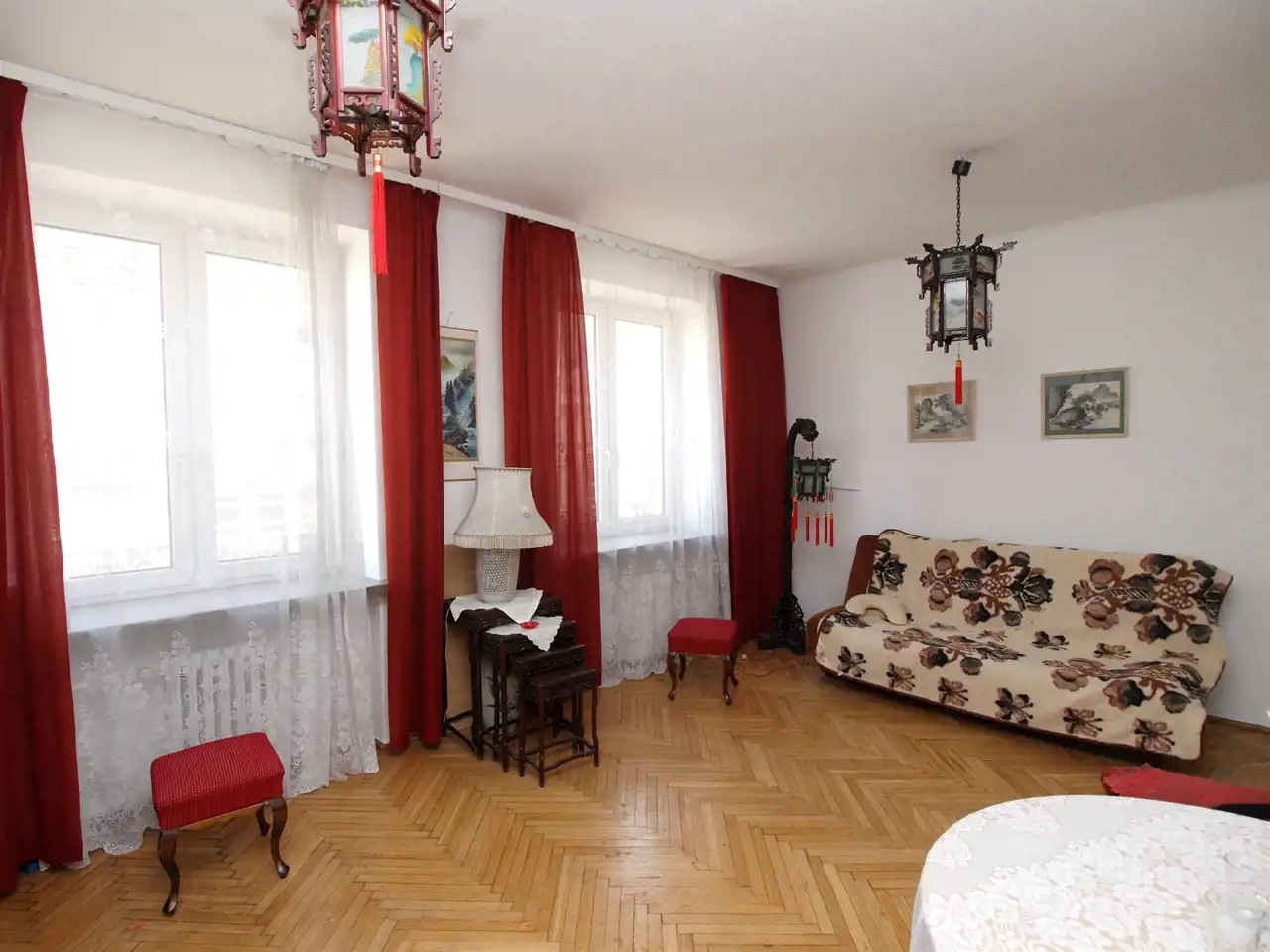 Mieszkanie wymaga remontu. Na podłodze parkiet, w łazience glazura i terakota starego typu do wymiany. Okna wymienione PCV. Bardzo dobry punkt komunikacyjny. W pobliżu znajduje się przystanek tramwajowy, autobusowy i metro. Lokal nadaje się na biuro, gabinet siedzibę firmy.