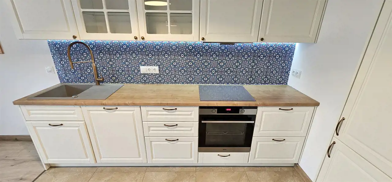 - stylowe płytki kuchenne oraz oświetlenie Italux