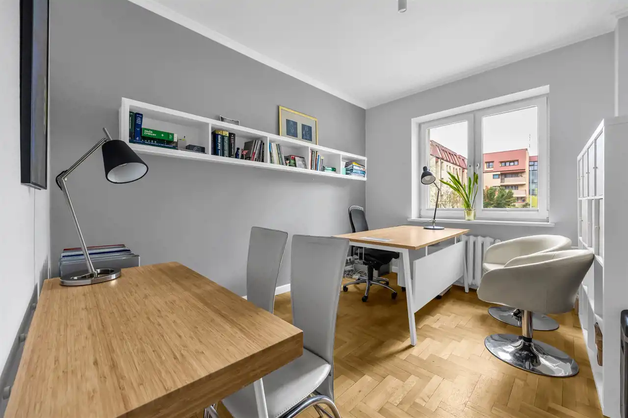 Mieszkanie po generalnym remoncie. Na dziś dostosowane pod kancelarię. Gotowe do użytkowania. Bardzo funkcjonalny układ pomieszczeń.