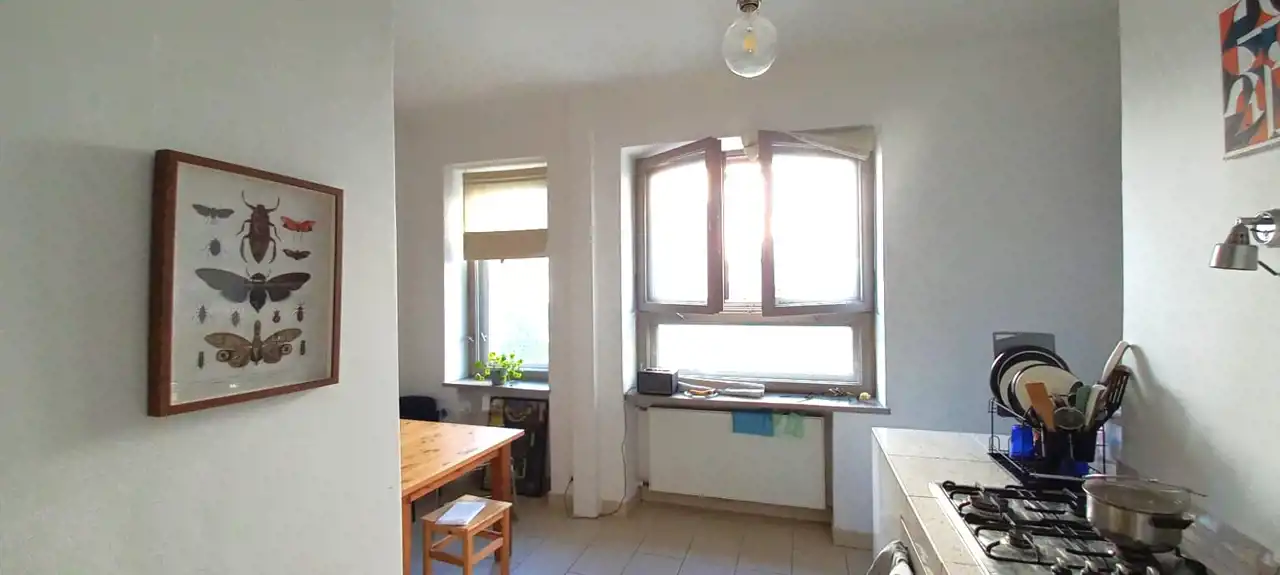 Układ mieszkania tworzy jego artsytyczny klimat. W obecnym kształcie znajdują się tu : kuchnia połączona z pokojem sypialnia i łazienka oraz łaczący wszystko korytarz. Wnetrza są bardzo przestronne, ciche i widne.