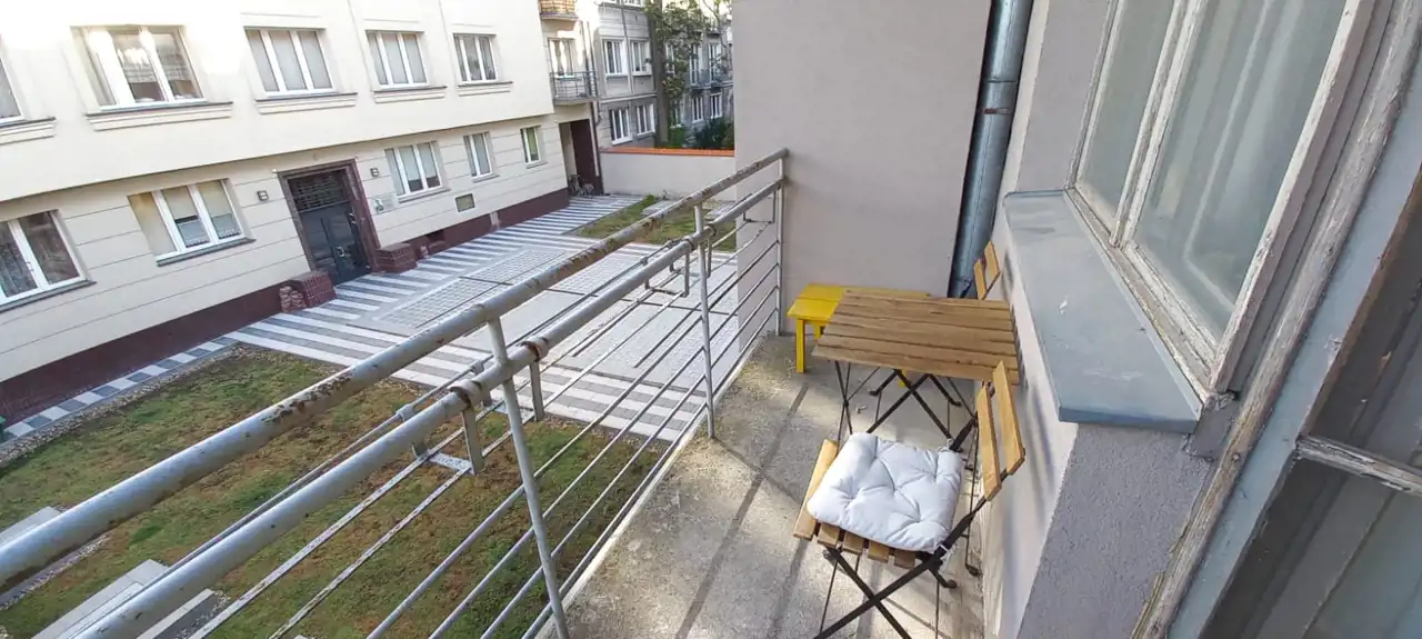 Ogromnym atutem jest duży balkon wychodzący na duże, zadbane podwórze.