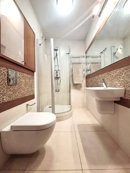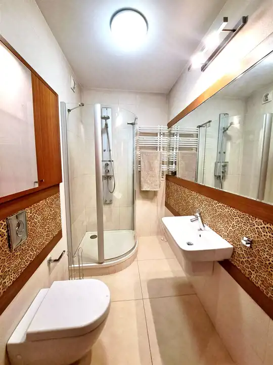 Apartament składa się z salonu z kuchnią, 3 sypialni i 2 łazienek, pralni. Balkon 9 m2. Apartament umeblowany, świeżo pomalowany gotowy do zamieszkania.