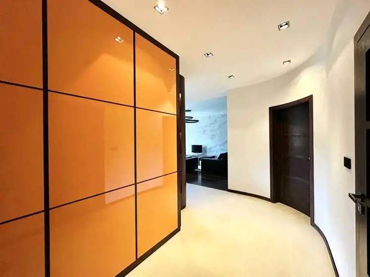 Część sypialniana oddzielona od części dziennej przestronnym holem z przestrzenią do przechowywania
