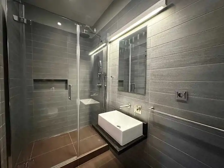 Dwie łazienki, w jednej wanna, w drugiej prysznic