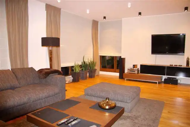 Do wynajęcia przepiękny apartament 152 m2 , wysoki na ponad 3 metry, 4 pokoje, 2 łazienki , 2 pomieszczenie gospodarcze, pralnia/suszarnia, zaprojektowany przez architekta w stylu skandynawskim, meble kuchenne HTH, bardzo duże garderoby, wysokie szafy, apartament nagrodzony przez miesięcznik poświęcony architekturze wnętrz, idealny rozkład i strony świata! Prawdziwy luksusowy apartament. Idealna propozycja dla ludzi szukających prestiżu i nietuzinkowych rozwiązań. Apartament może również być propozycja dla dużej rodziny np. rodzice + dzieci + dziadkowie/służba/opiekunka do dziecka pn. pozwala na takie wyodrębnienie stref mieszkalnych, aby z jednej strony stworzyć poczucie komfortu i intymności z drugiej strony pozwala stworzyć np. wspólne miejsca spotkań takie jak : jadalnia/salon wypoczynkowy. Może być też propozycją na wyszukane mieszkanie dla dwojga/biuro dla agencji reklamowej/pracowni architektonicznej itp. Lokalizacja Oś Królewska, najbardziej reprezentacyjna aleja Wilanowa. Bliskość Pałacu Wilanowskiego, Parku Zdrojowego, Lasu Kabackiego, Ogrodu Botanicznego, stanowi idealne miejsce dla osób poszukujących wyciszenia, jak i możliwości aktywnego spędzenia czasu. Na chętnych czekają: trasy rowerowe, korty tenisowe, pola golfowe, stadniny koni. Łatwy dojazd do centrum (Al. Wilanowską, ul. Przyczółkową, Sobieskiego) Architektura Kameralne dziedzińce zaaranżowane w formie japońskich ogrodów, duże tarasy, loggie, zimowe ogrody oraz chronione eleganckie recepcje na parterach budynków. Elegancka bryła budynku obłożona piaskowcem, drewniane okna na całą wysokość mieszkania zapewniają naturalne światło a także nadają lekkości i elegancji. Wewnętrzne alejki spacerowe, trawniki są dopełnieniem niepowtarzalnego stylu. Apartament jest wykończony pod klucz z najwyższej jakości materiałów, użytko m. in. marek : Miele, Alno, Vileroy&Boch, Axor Hans Grohe, Almi Decor, nowoczesny sprzęt AGD Bezpieczeństwo: System monitoringu, kamery, kontrola dostępu, recepcje na parterach. Piętro 1 z 3, strona świata połudn/zachód 2 garaże w cenie, możliwe nawet 4 Garaże. Na parterze jest recepcja. Możliwość wynajęcia za 11900 PLN/mies. "all inclusive " lub 1200 PLN/dzień a także leasingu, sprzedaż za 2mln PLN. Zapewniamy sprzątanie, odbiór prania, opiekę dla dzieci, drobne naprawy. "Fully serviced apartment" mamy 10 lat doświadczenia w obsłudze klientów VIP/Expat/Ambasad/Managerów wys. szczebla, apartament zarządzany przez profesjonalną firmę, zapewniamy spokój 24/7. Mówimy po polsku, angielsku, niemiecku, rosyjsku i ukraińsku