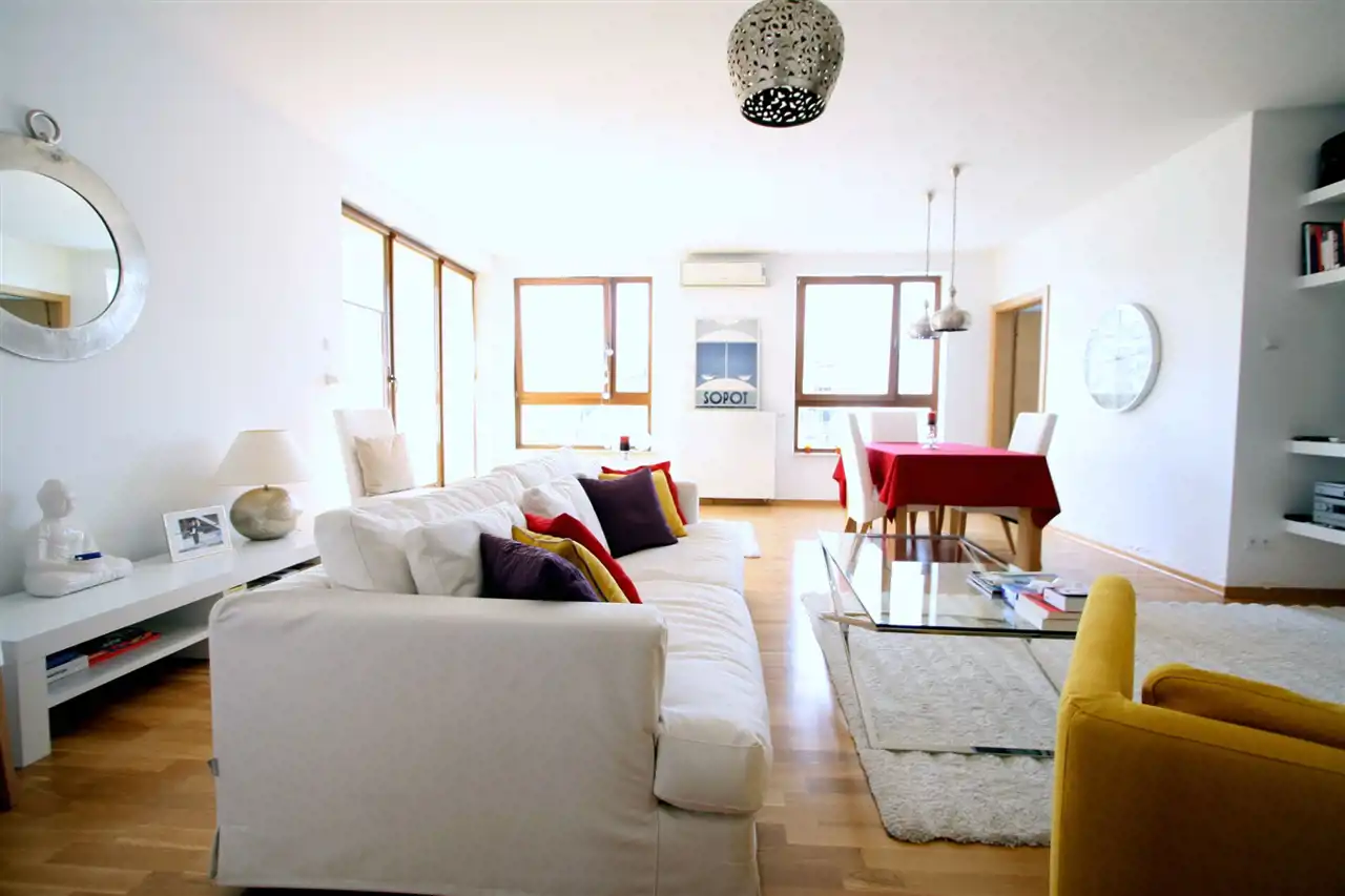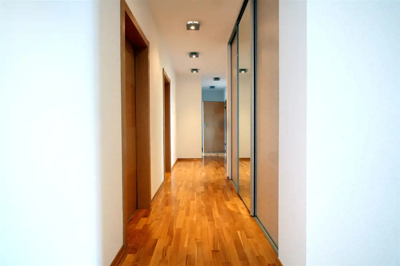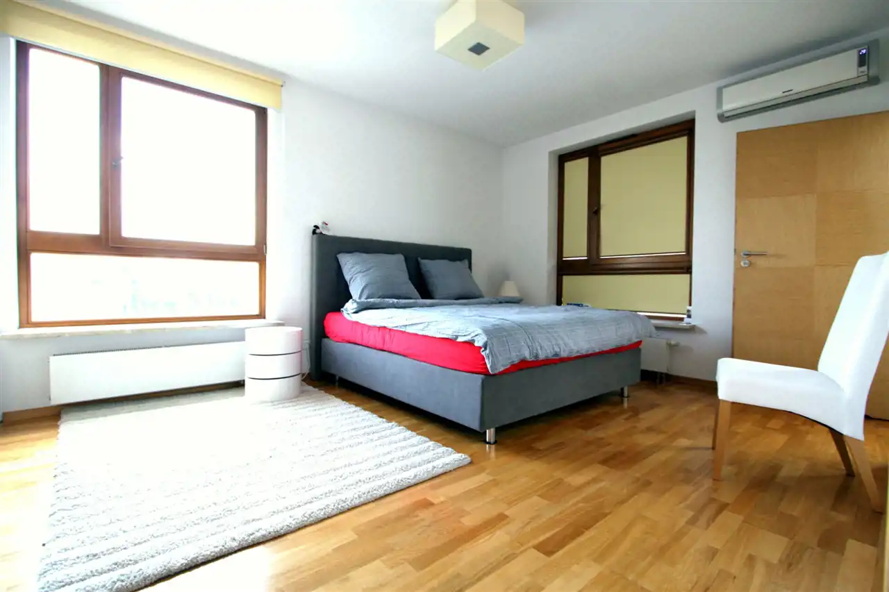 W skład apartamentu wchodzi widny, przestronny salon z wyjściem na balkon oraz zabudowana kuchnia, wyposażona we wszystkie potrzebne sprzęty AGD, 4 pokoje w tym sypialnia master z łazienką posiadająca wannę, sypialnia, gabinet oraz pokój do własnej aranżacji, łazienka z prysznicem i wanną, WC, duży hall oraz korytarz. Apartament wykończony z wysokiej jakości materiałów, bardzo przestronny układ pomieszczeń, mieszkanie słoneczne, okna w ekspozycji na 3 strony świata, klimatyzacja. Osiedle strzeżone z monitoringiem, ochroną, w wejściu do budynku reprezentatywne lobby.
