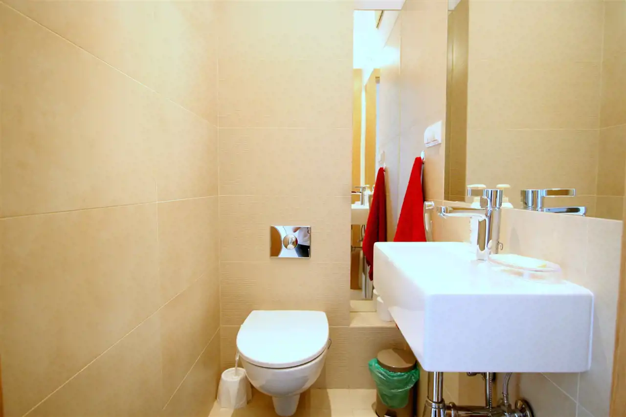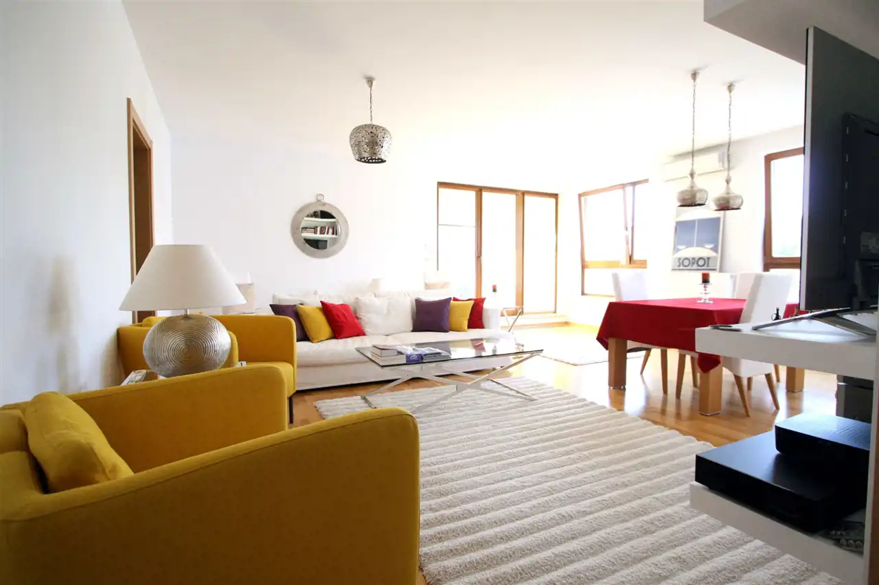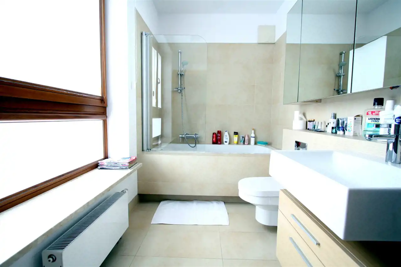 W skład apartamentu wchodzi widny, przestronny salon z wyjściem na balkon oraz zabudowana kuchnia, wyposażona we wszystkie potrzebne sprzęty AGD, 4 pokoje w tym sypialnia master z łazienką posiadająca wannę, sypialnia, gabinet oraz pokój do własnej aranżacji, łazienka z prysznicem i wanną, WC, duży hall oraz korytarz. Apartament wykończony z wysokiej jakości materiałów, bardzo przestronny układ pomieszczeń, mieszkanie słoneczne, okna w ekspozycji na 3 strony świata, klimatyzacja. Osiedle strzeżone z monitoringiem, ochroną, w wejściu do budynku reprezentatywne lobby.