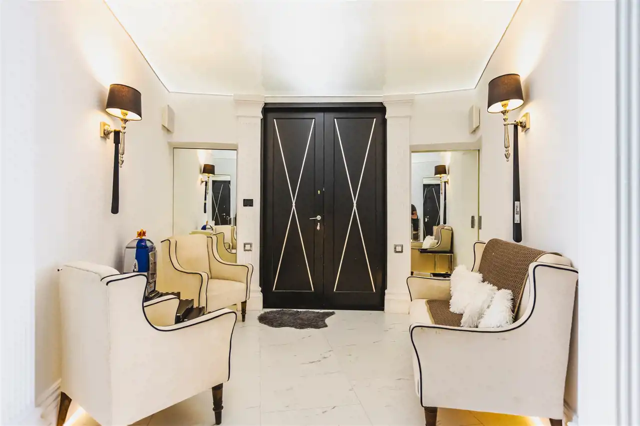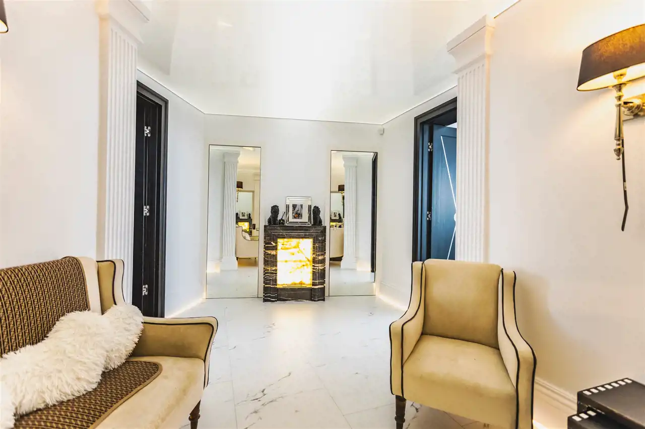 The penthouse interiors were expertly designed by the acclaimed design studio L Escargot Rose, using only top-tier materials such as natural stone, fine woods, and brass.