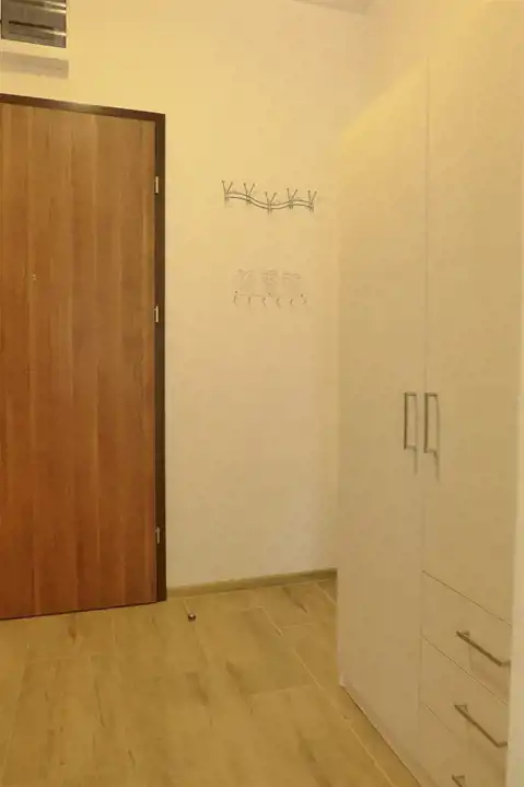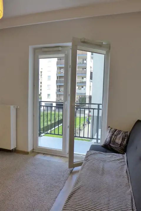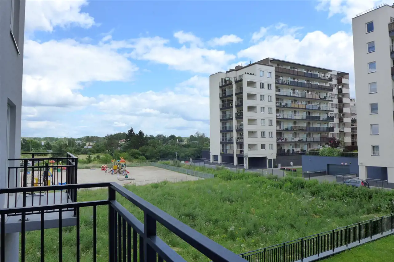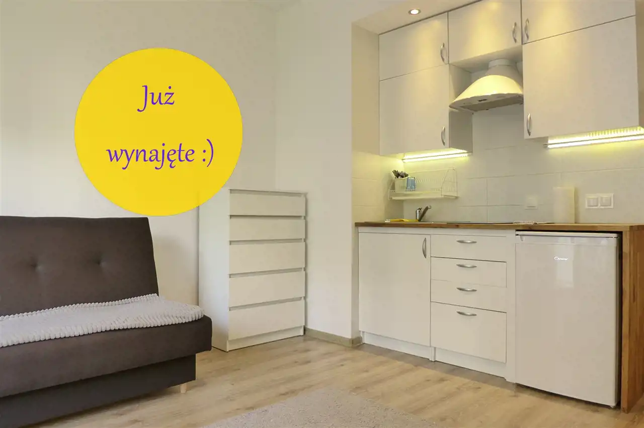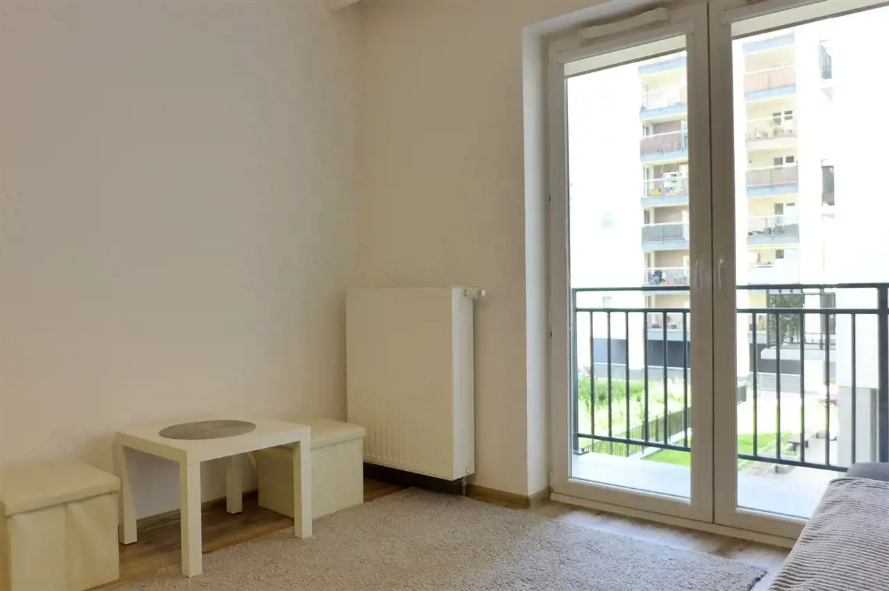 Pokój z aneksem kuchennym, łazienka z kabiną prysznicową, pralka i przedpokój z szafą. Zadbane, widne z balkonem. Lokal dla jednej osoby na nowym strzeżonym osiedlu.