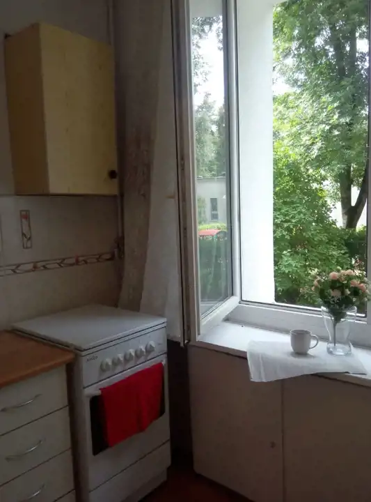 Mieszkanie 1-pokojowe, na wysokim parterze w trzypiętrowym budynku. Budynek położony jest na spokojnym zielonym osiedlu, na warszawskim Służewcu.