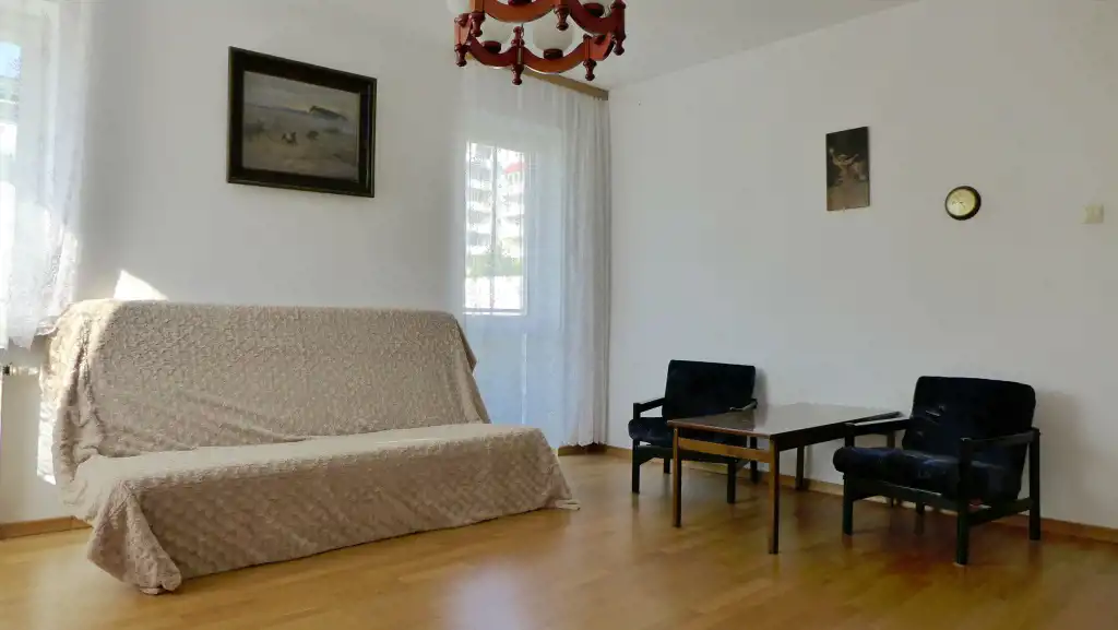 Pokój dzienny 19 m i dwie sypialnie po 11 m, kuchnia 7 m wyposażona w szafki i AGD, łazienka 4,4 m z wanną i oddzielne wc., hall 8,4 m z szafą. Mieszkanie czyste, zadbane. Niewielka ilość mebli widoczna na zdjęciach lub puste w razie potrzeby.
