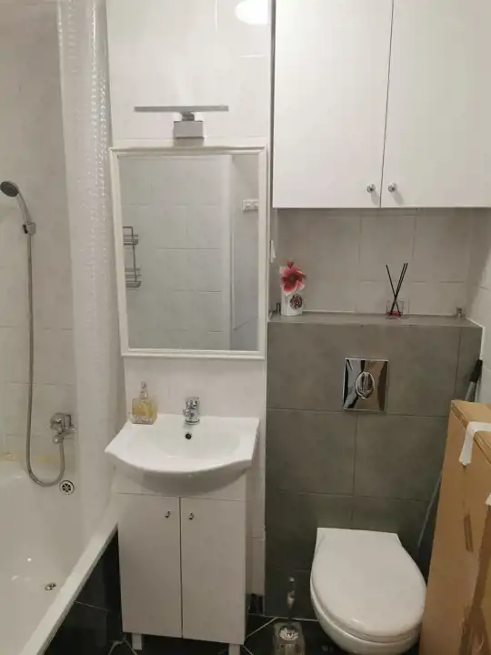 Lokal składa się z pokoju, łazienki z wanną i przedpokoju z wnęką kuchenną, usytuowany jest na parterze 10-cio piętrowego budynku.
