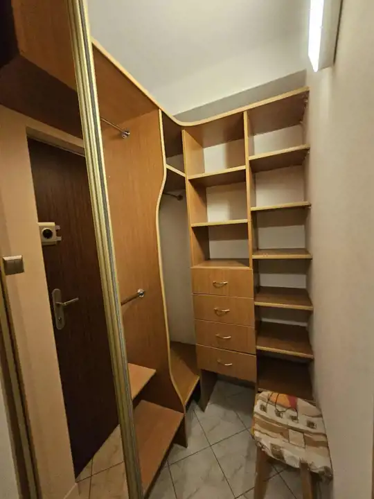 Pełne umeblowanie : w dużym pokoju wersalka, stół z krzesłami oraz komoda; w sypialni wbudowana szafa wnękowa; kuchnia wyposażona w AGD (kuchenka z indukcją ).