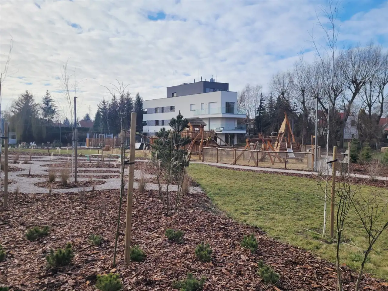 Budynek z windą położony na wybudowanym w 2024r. osiedlu składającym się kilku kameralnych budynków.