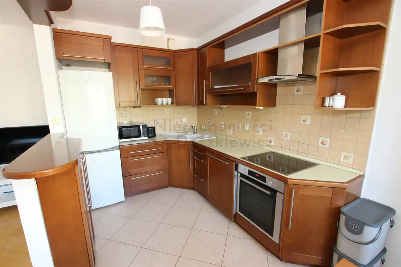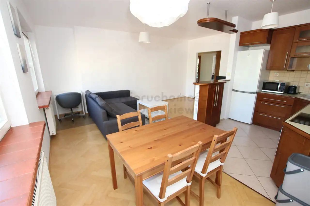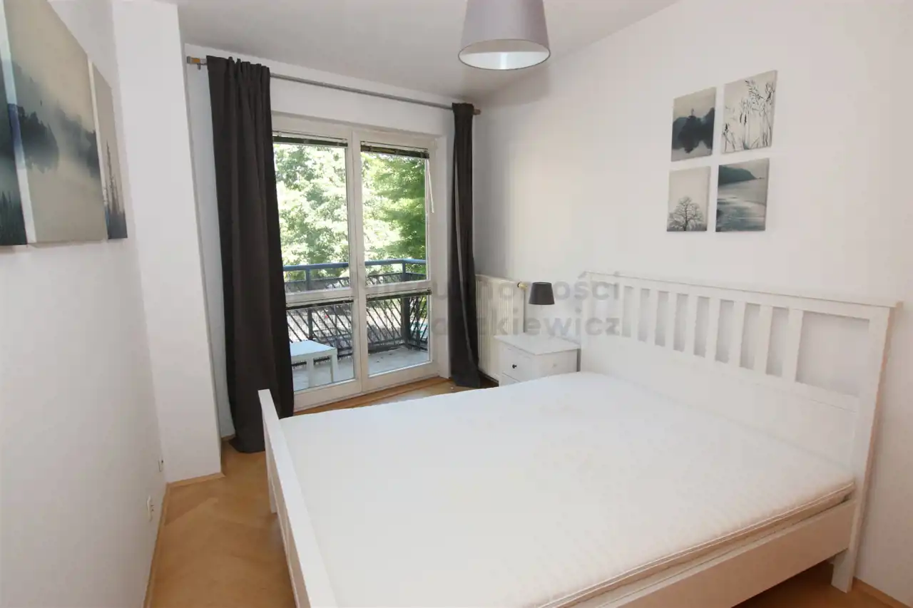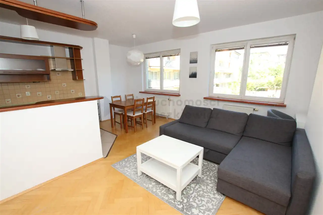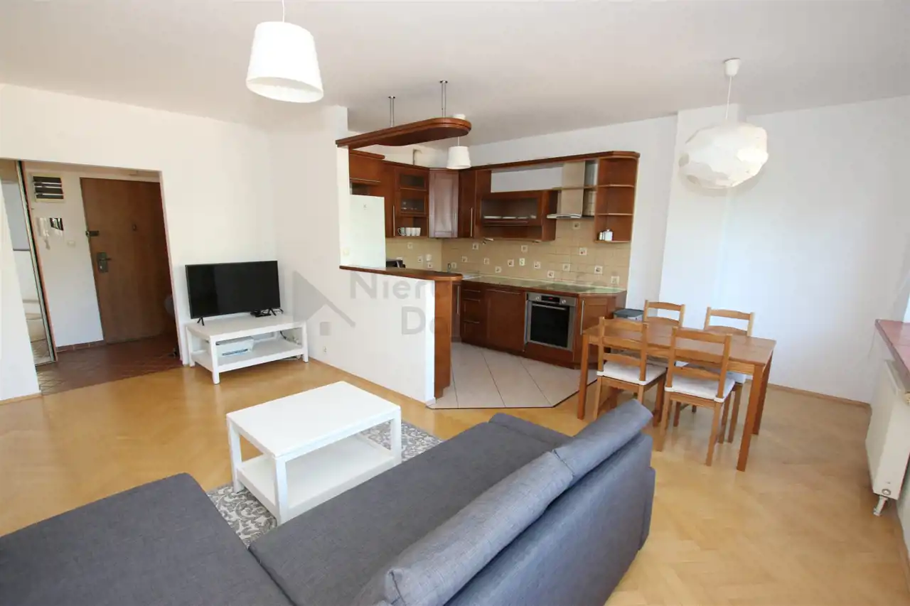 Przestronne mieszkanie 2-pokojowe o funkcjonalnym rozkładzie pomieszczeń, w pełni umeblowane, zlokalizowane na Kabatach na zamkniętym i strzeżonym osiedlu w bliskim sąsiedztwie stacji metra M1 Kabaty i parku.