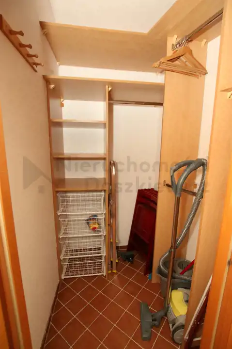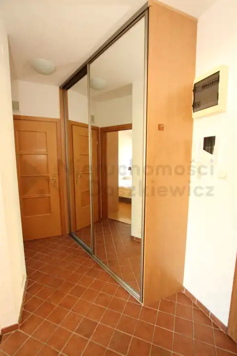 W przedpokoju na podłodze terakota, wyposażenie: pojemna szafa w zabudowie. Z przedpokoju wejście do garderoby 2m.