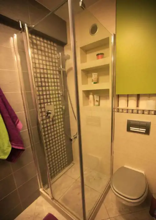 - łazienka z prysznicem i wygodną zabudową