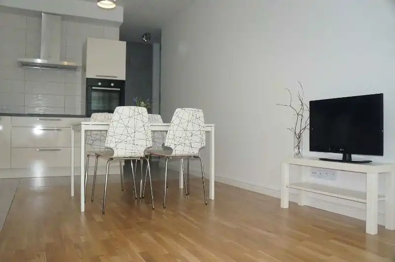 Mieszkanie o wysokim standardzie w nowoczesnym budynku apartamentowym na kameralnym osiedlu. Jest zlokalizowane w bezpośrednim sąsiedztwie biurowców w centrum biznesowo-korporacyjnym niedaleko Galerii Mokotów. Jego wielką ozdobą są piękne (drewniane) panoramiczne okna, które wychodzą na południową stronę oraz loggia, do której są dwa niezależne wyjścia - z salonu i sypialni. Apartament jest w pełni urządzony i wyposażony (pralka Bosch, lodówka Bosch, zmywarka Bosch, płyta indukcyjna Bosch, piekarnik Bosch, okap HOTPOINT ARISTON, żelazko, deska do prasowania, suszarka do bielizny, TV,odkurzacz, zastawa stołowa, garnki, czajnik).