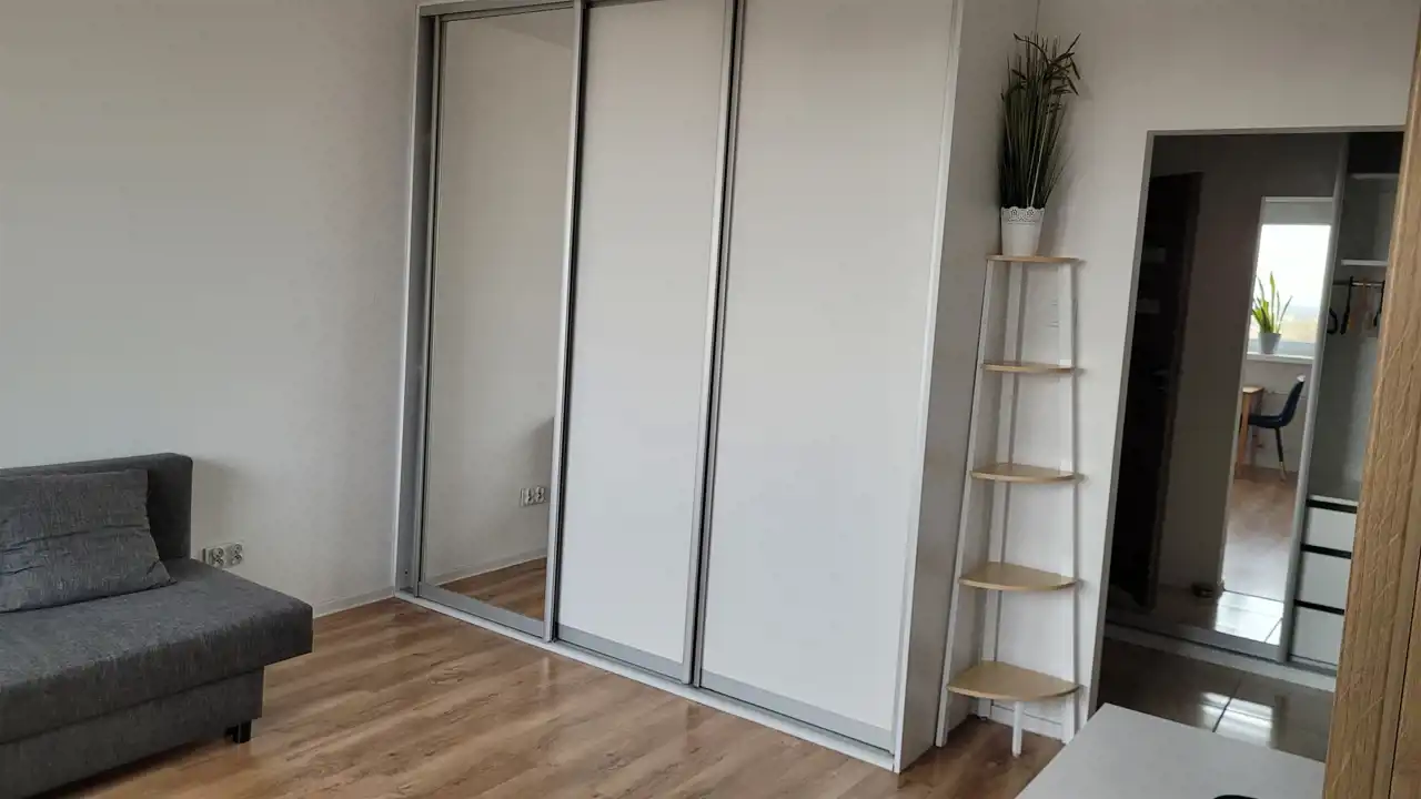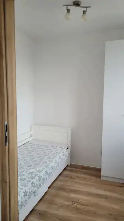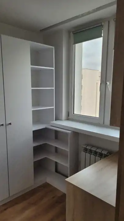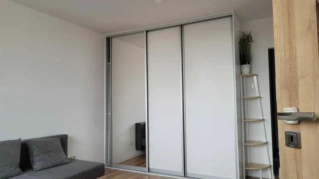 W sypialni i przedpokoju są zabudowane szafy, bardzo pojemne typu Komandor.