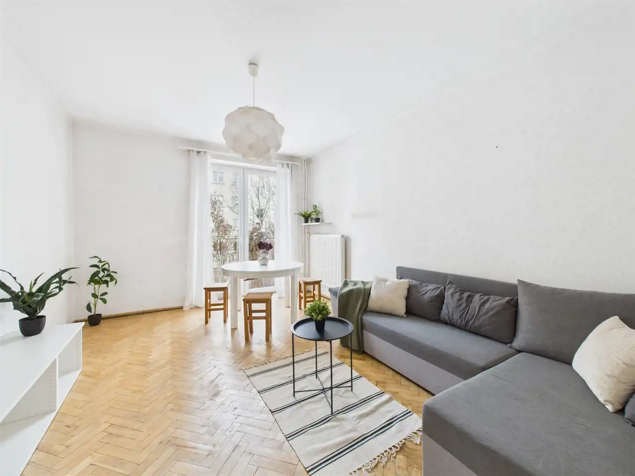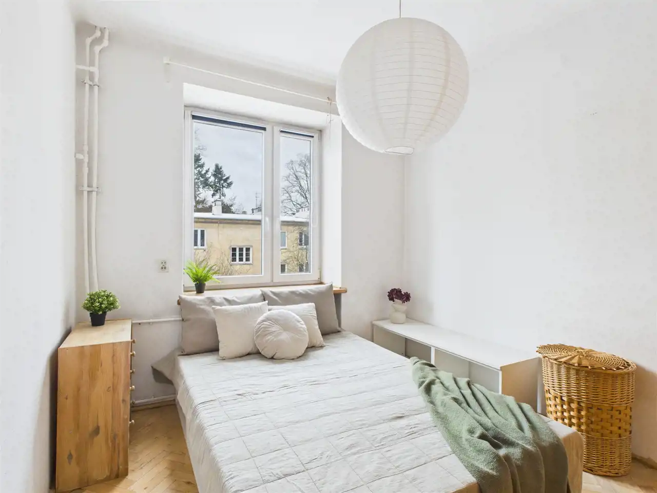 - Duży pokój z wyjściem na balkon;