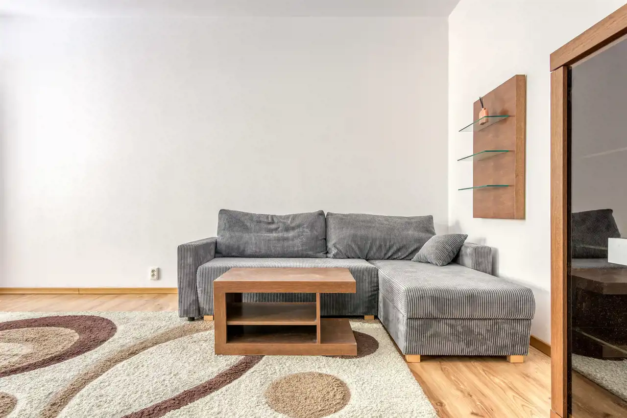 Ma ponad 51 metrów kwadratowych powierzchni i zdecydowaniu czuć to w codziennym użytkowaniu. Jest naprawdę bardzo dużo przestrzeni. Zmieści się w salonie jeszcze biurko do pracy lub nauki. Kuchnia jest półotwarta, co jest naprawdę bardzo praktycznym rozwiązaniem. Sypialnia z dużą szafą i łóżkiem.