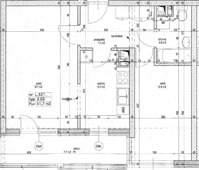 - Charakterystyka mieszkania 51.5 m2, 2 pokoje
