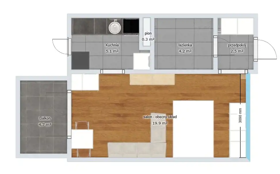 - Charakterystyka mieszkania 31.96 m2, 1 pokój