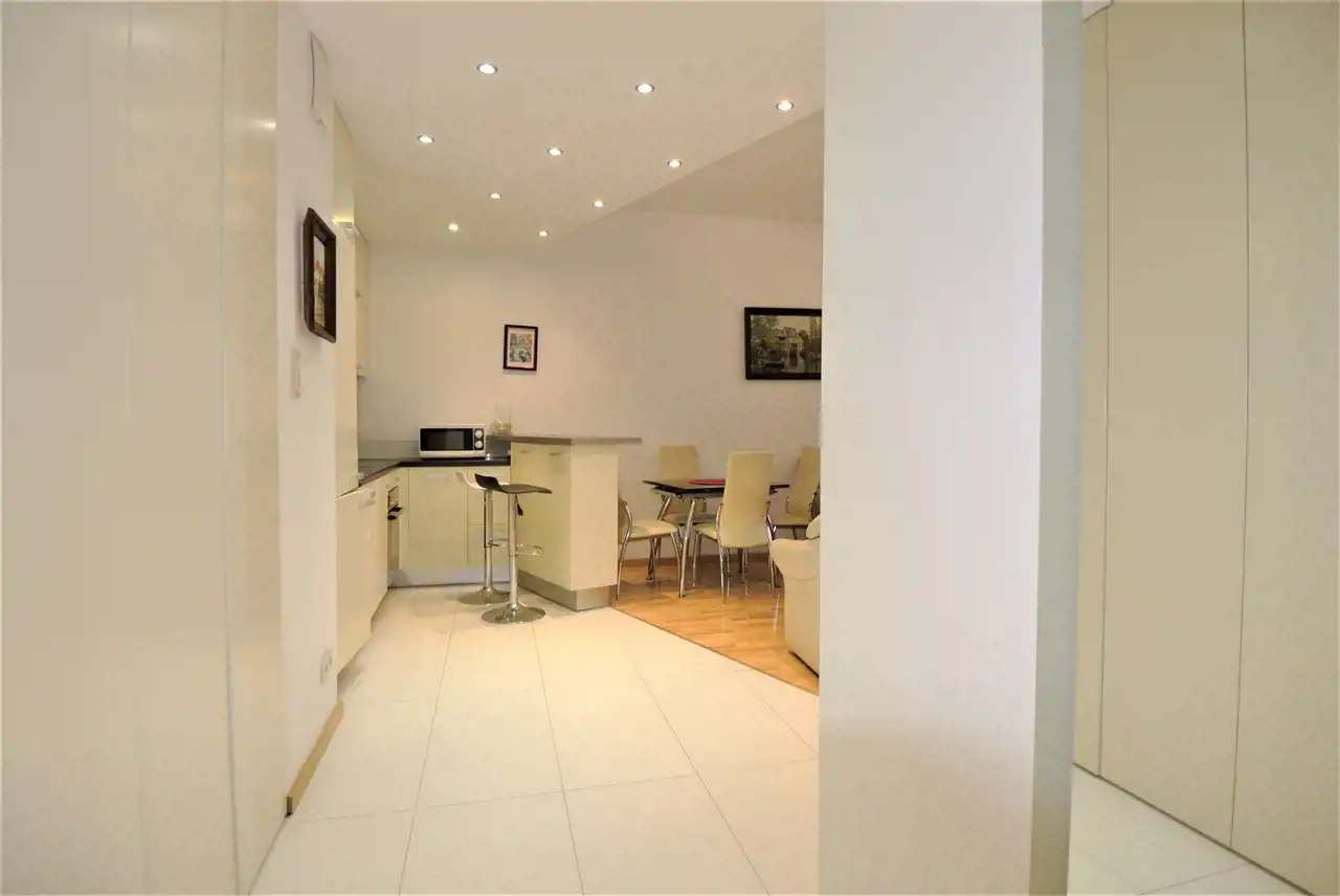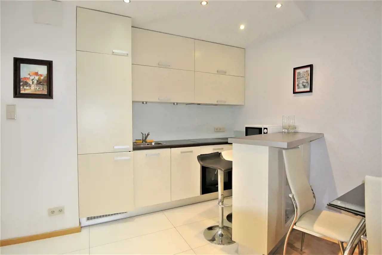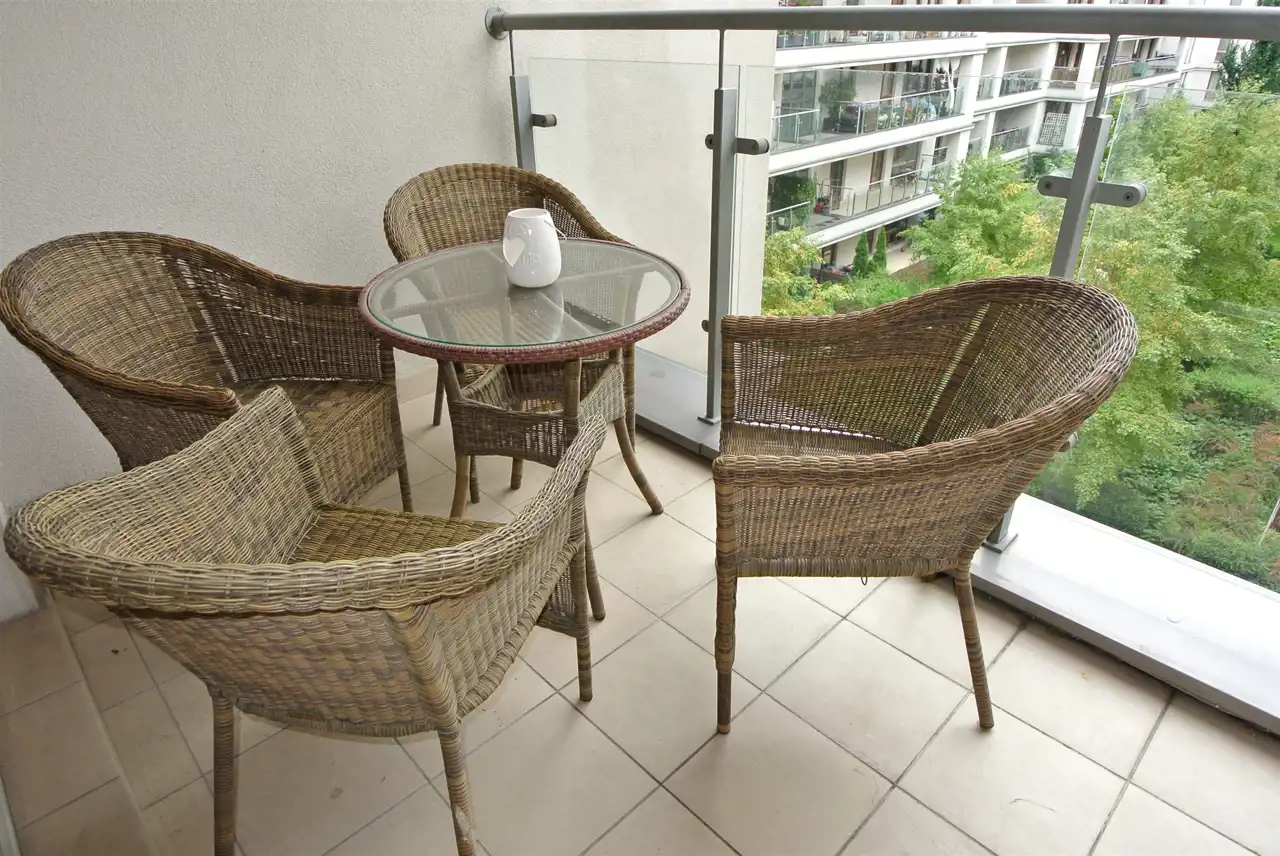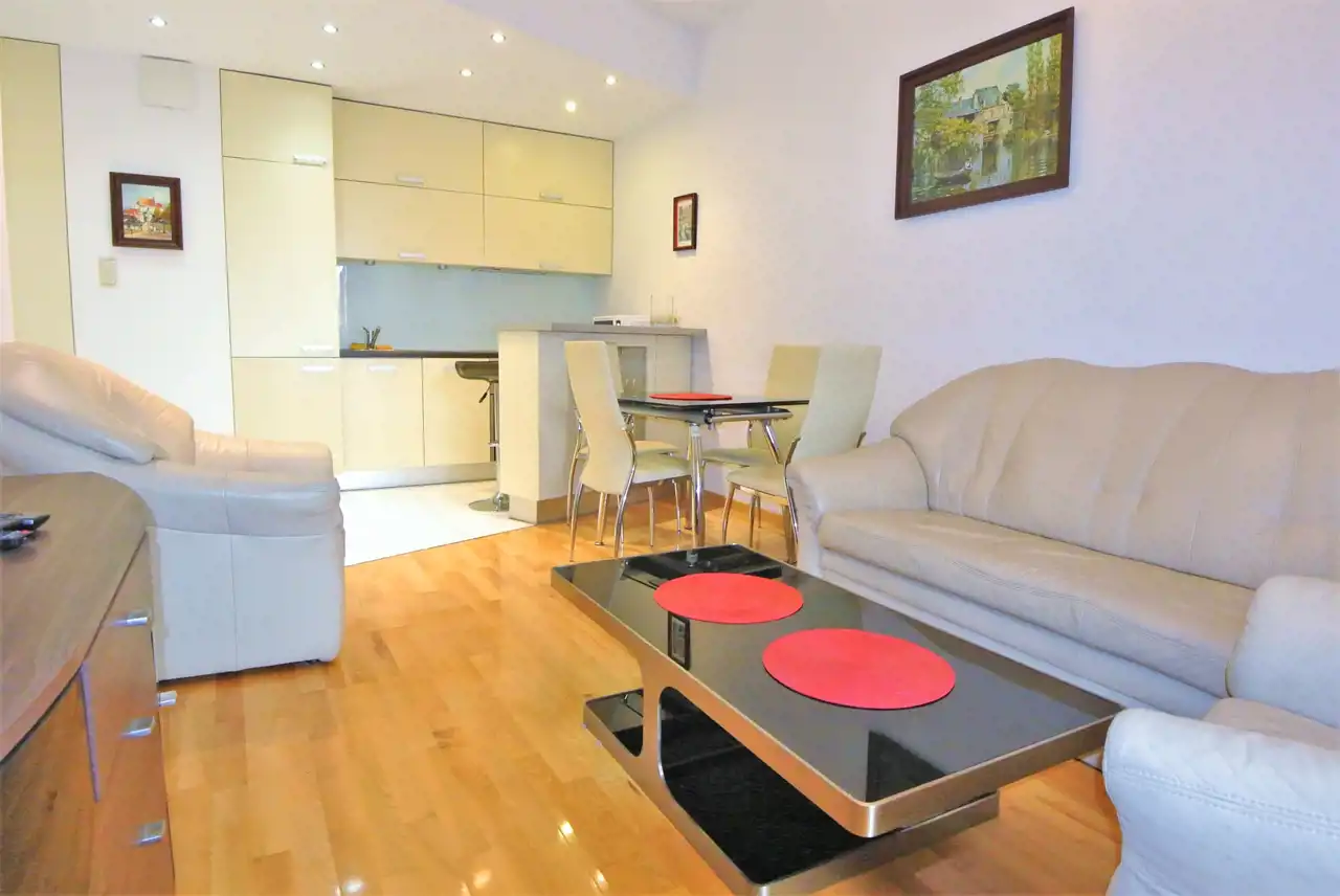 - przestronnego salonu połączonego z jadalnią i kuchnią, z wyjściem na balkon z widokiem na dziedziniec,