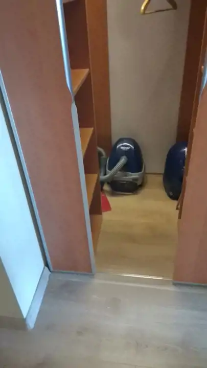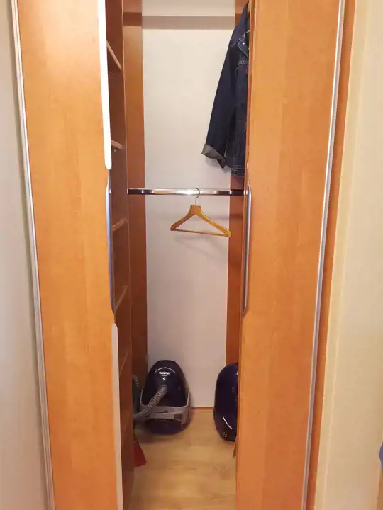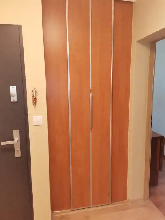 w mniejszym pokoju, mieści łóżko podwójne , możliwość wstawienia szafy lub komody, może biurko.