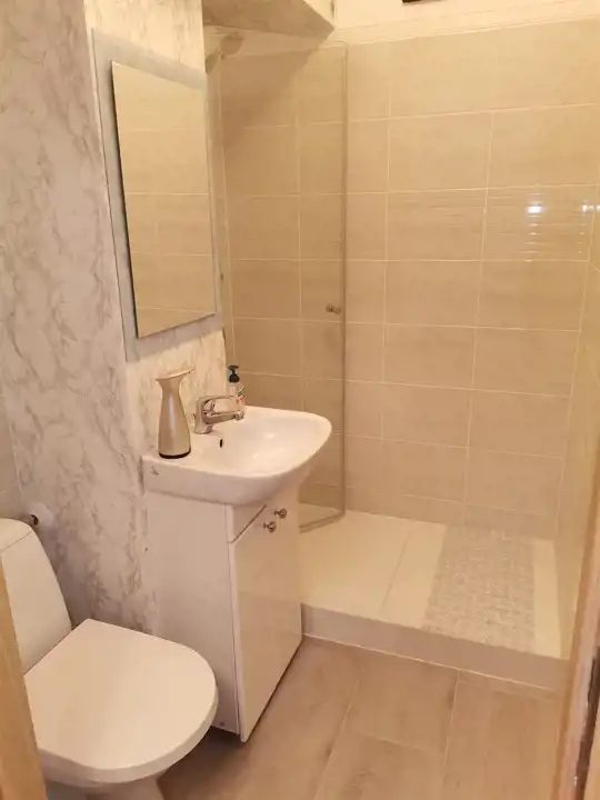Łazienka starannie wykończona, nowoczesna z kabiną prysznicową