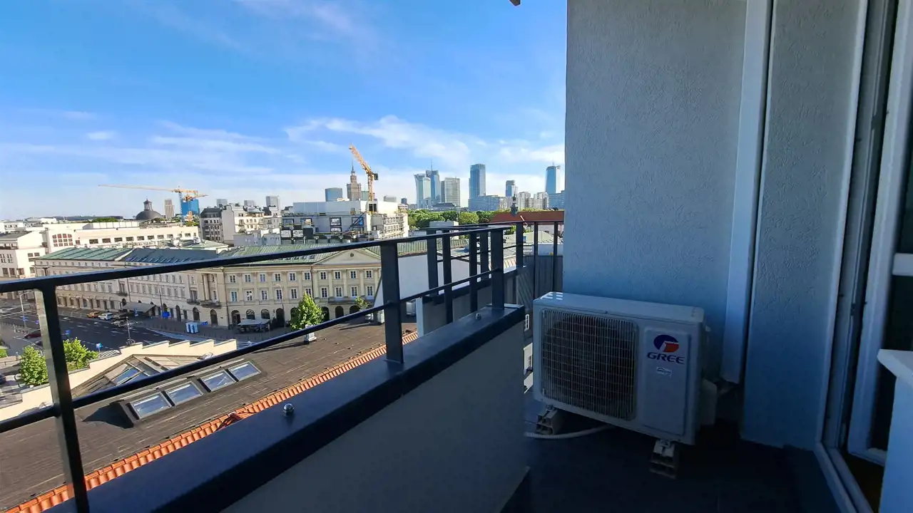 W eleganckim, niedawno odnowionym i dobrze utrzymanym wnętrzu znajdziemy pokój dzienny z przejściem do niewielkiej sypialni (nowe łóżko) i z wyjściem na balkon w kierunku południowym - tu zachwyci nas imponujący widok na śródmieście Warszawy, z mocnym akcentem monumentalnej Opery Narodowej! Tuż obok Teatr Narodowy, a za nim Plac Piłsudskiego i przepiękny Ogród Saski.