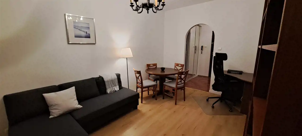 Mieszkanie jest w pełni umeblowane, wyposażone w sprzęt AGD, tuż po wymianie podłóg i odmalowaniu ścian - gotowe do zamieszkania od zaraz.
