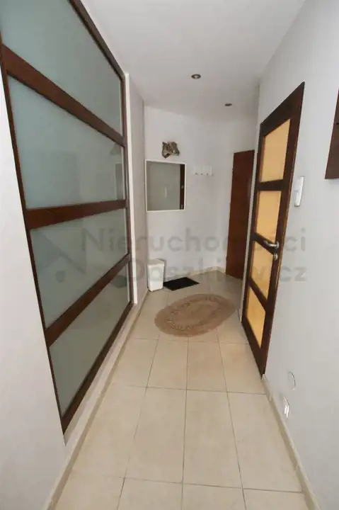 W przedpokoju na podłodze gres, na wyposażeniu szafa wnękowa.