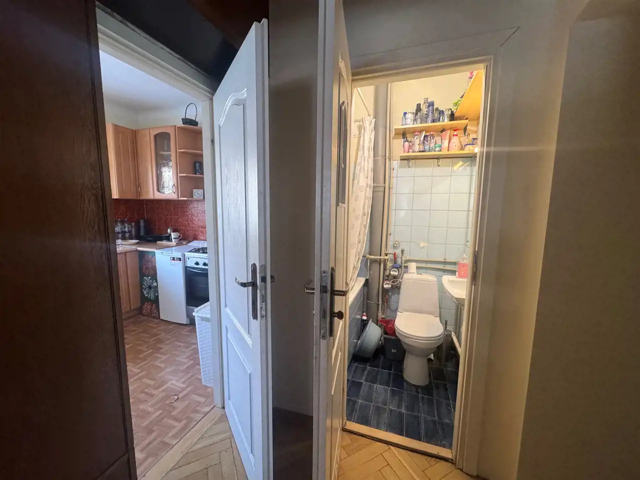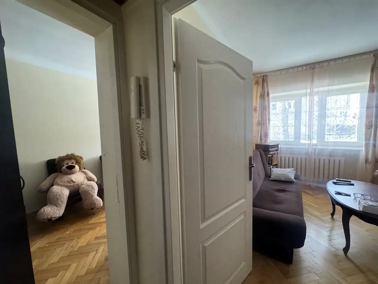Lokal składa się z dwóch niezależnych pokoi, oddzielnej, widnej kuchni, mniejszej łazienki z wanną oraz przedpokoju z szafą.
