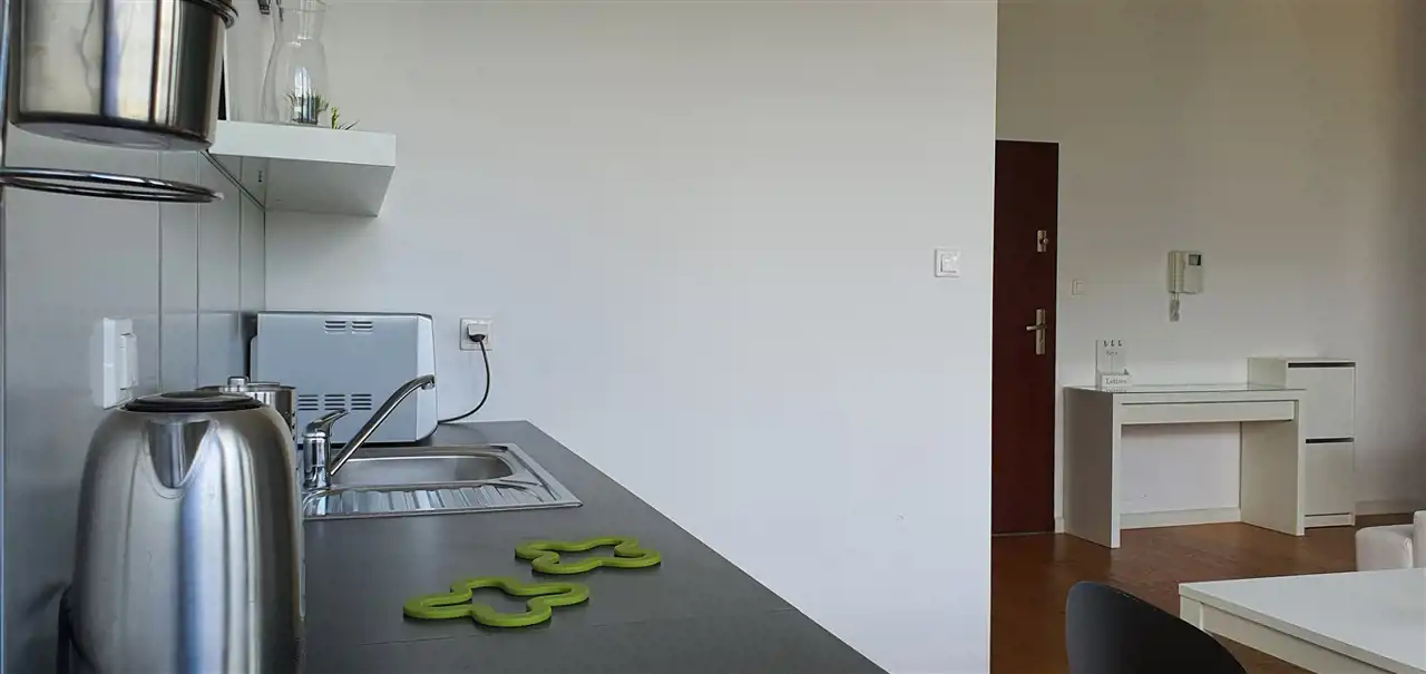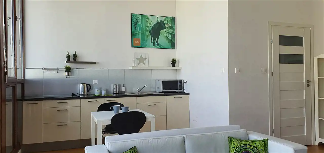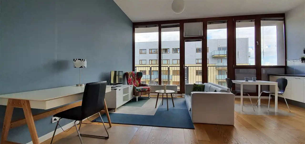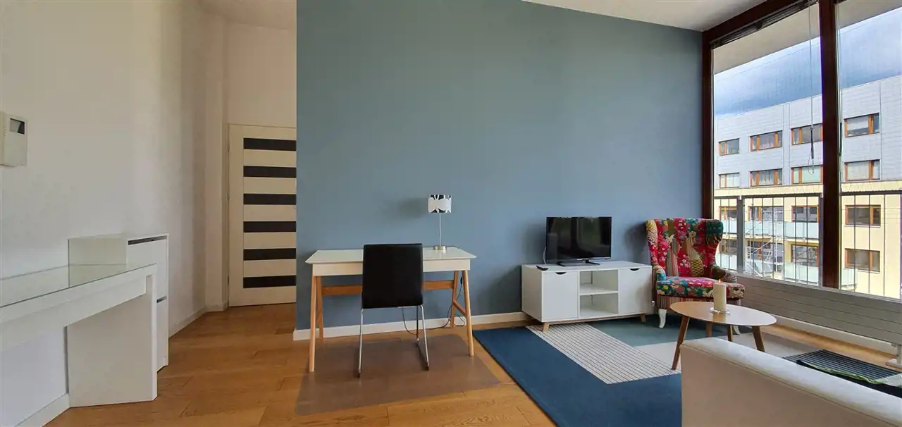 Dwupokojowy apartament z miejscem postojowym, naziemnym w apartamentowcu na ul. Chodkiewicza, w Warszawie. Klimatyzacja!