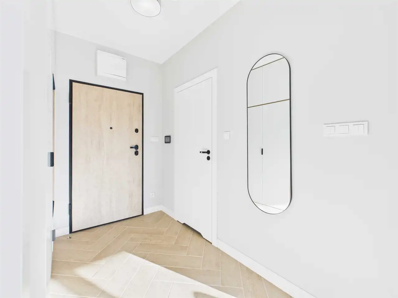 Mieszkanie zostało urządzone w wysokim standardzie, z niezwykłą dbałością o detale – zarówno w zakresie estetyki, jak i praktycznych rozwiązań pod względem funkcjonalności przestrzeni. Harmonijna kolorystyka, przemyślany układ i wysokiej jakości materiały tworzą spójną oraz efektowną całość.