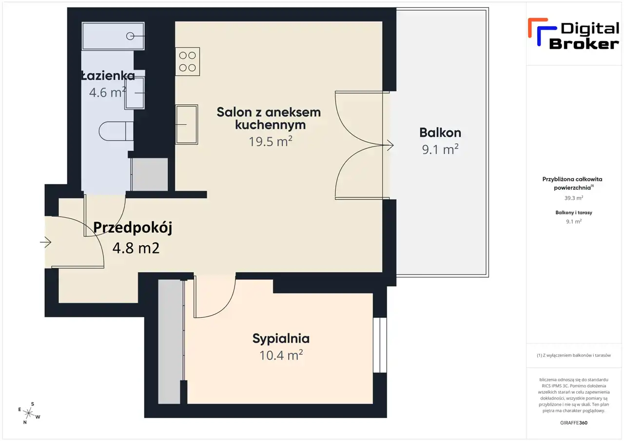 - Charakterystyka mieszkania 39.3 m2, 2 pokoje